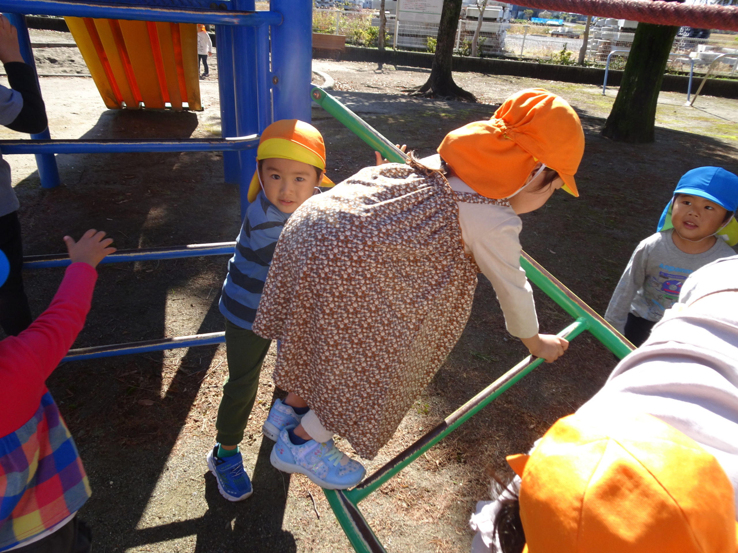 クライミングやおいかけっこで体を動かしたり、
