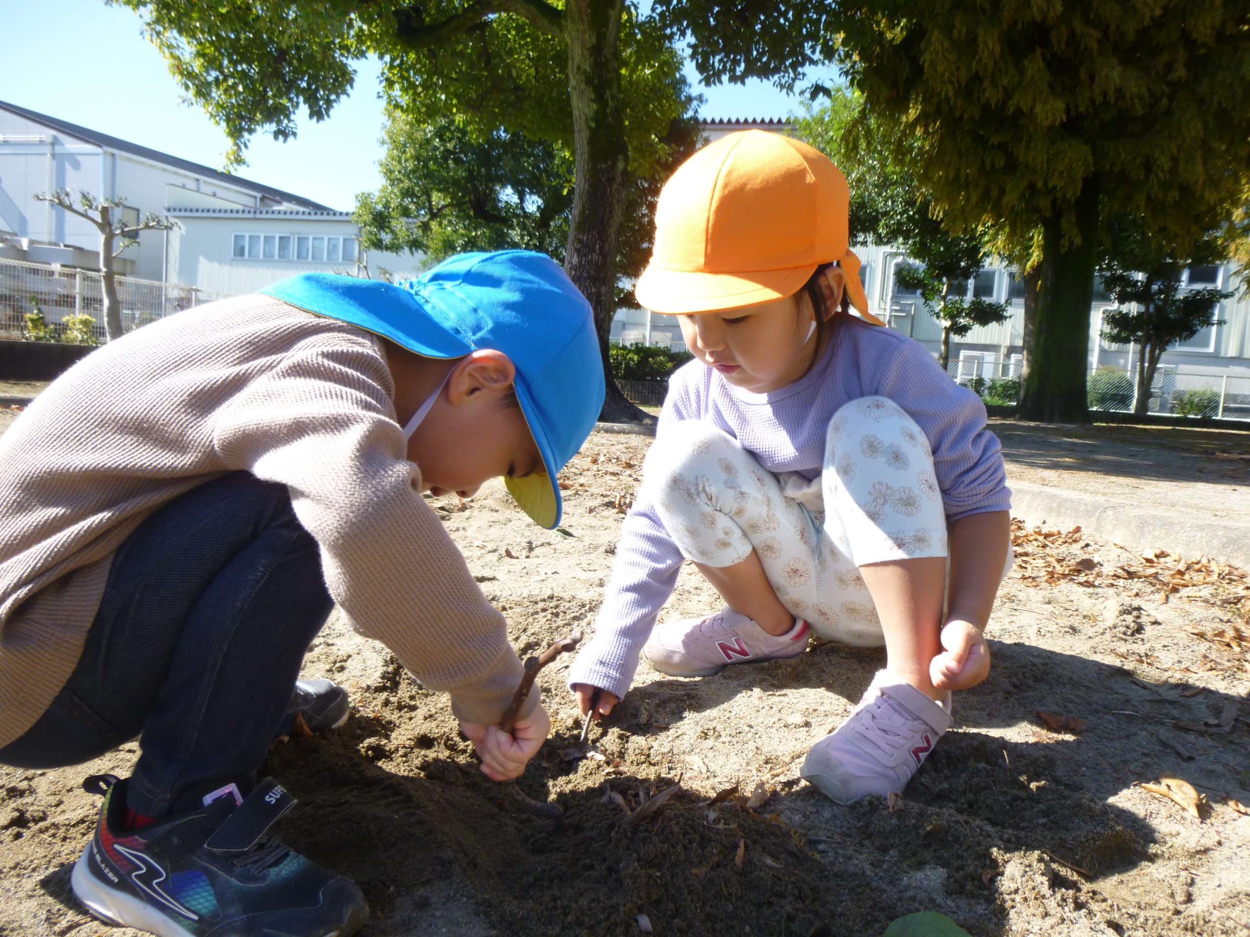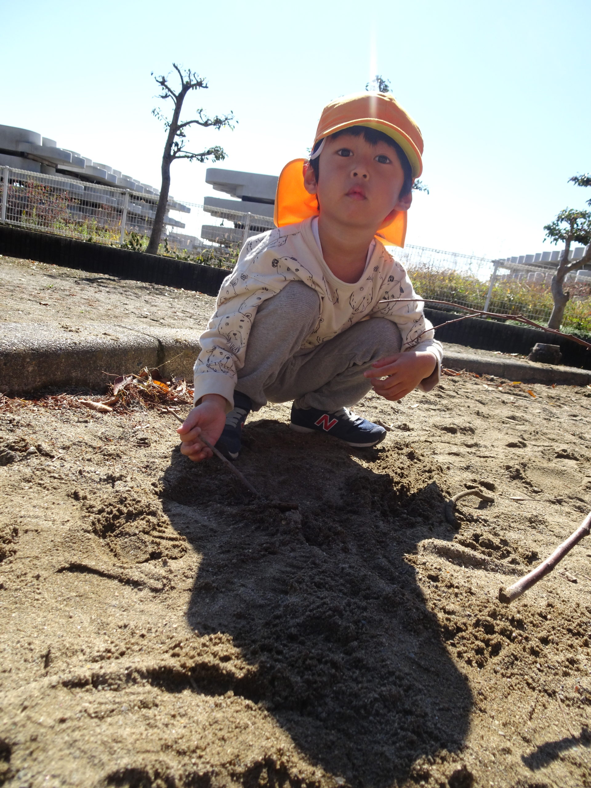 砂場に行くと、「何か埋まっているものがあるかもしれない」と