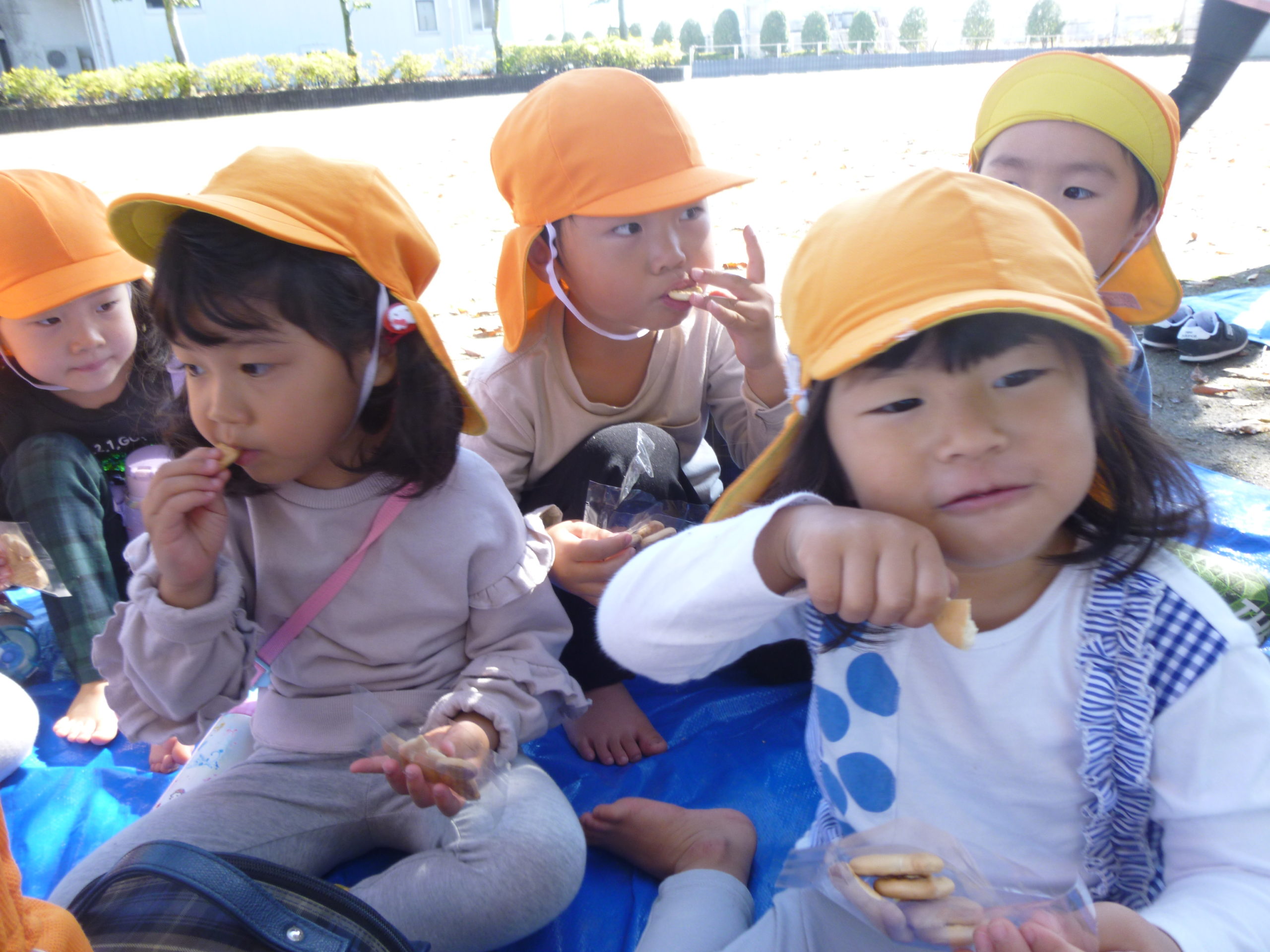 公園でおやつを食べて特別感を味わいました。
