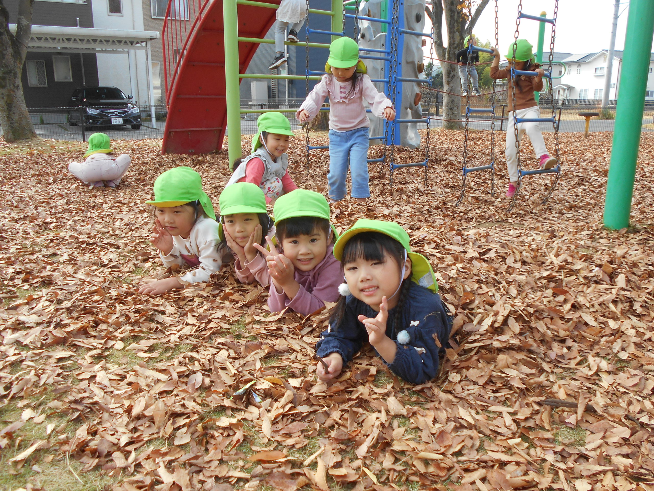 春に来た公園の様子とは違い、遊具の下には落ち葉がいっぱい😊