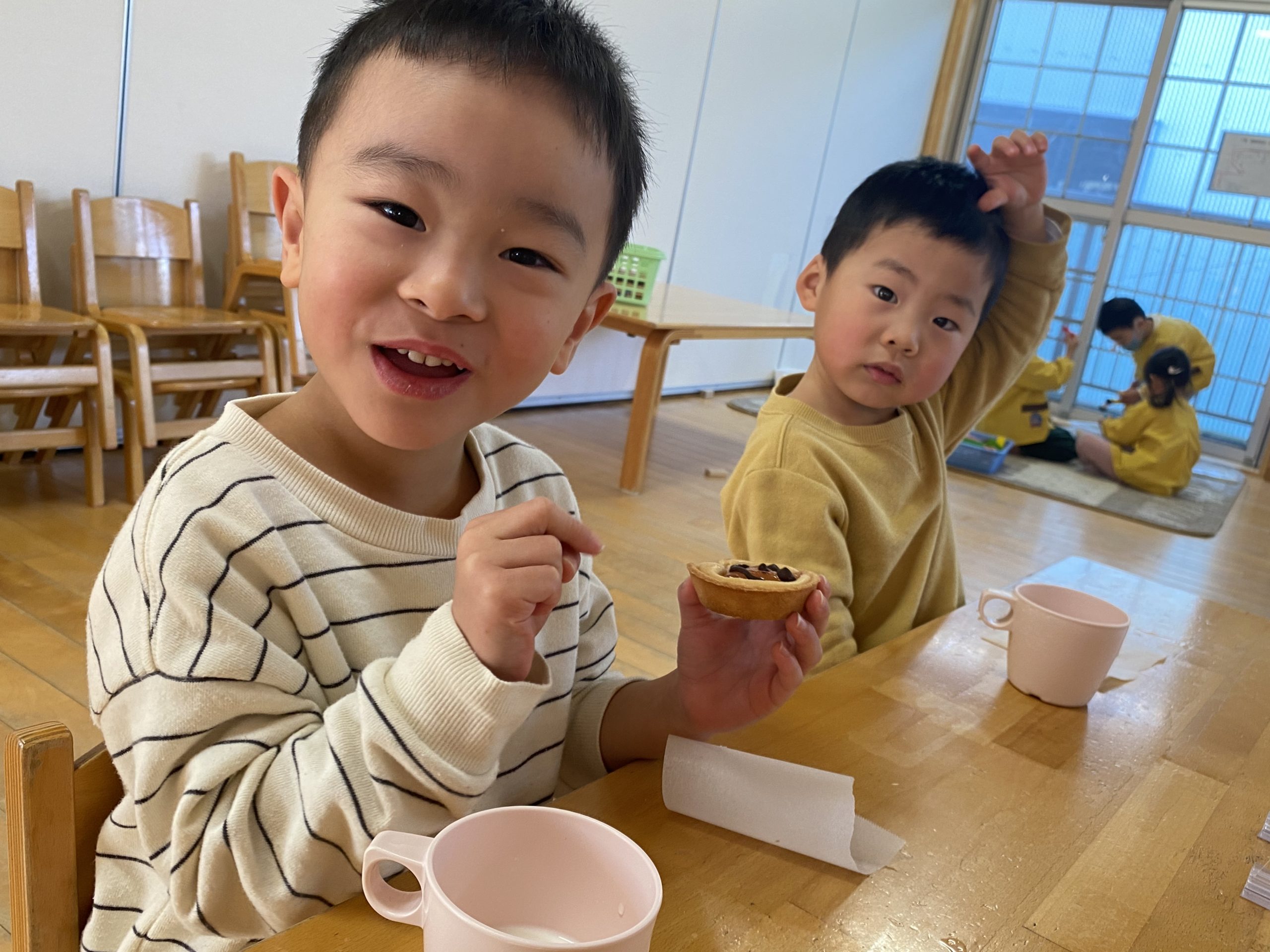 毎月のお楽しみ、誕生会ケーキ🍰今年ラストを飾るのはどんなおやつでしょうか🤭