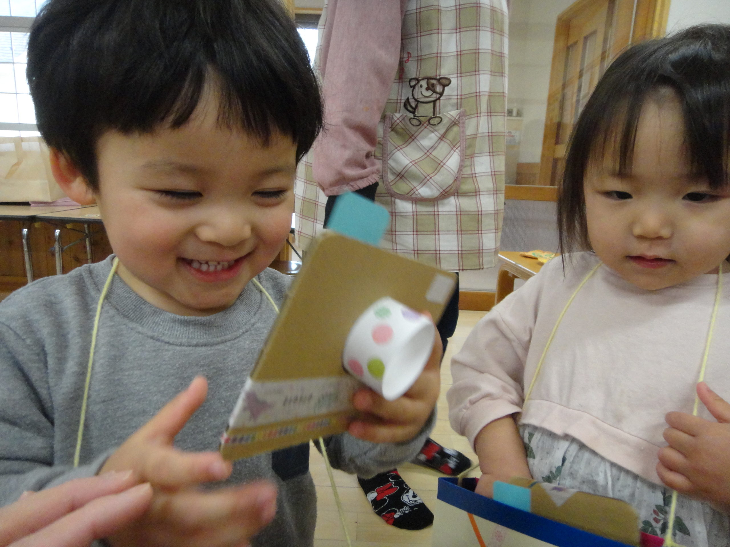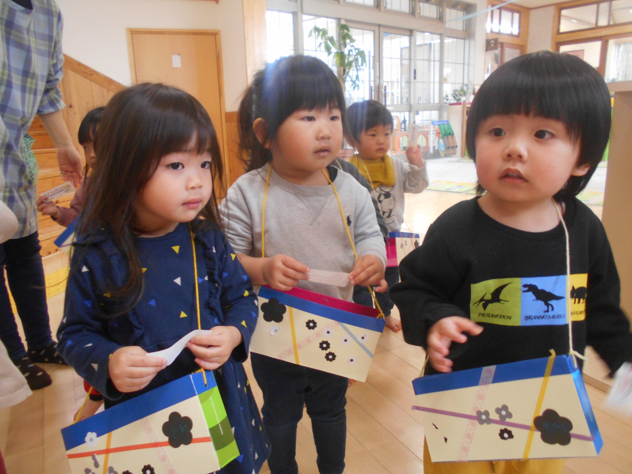 今日の鞄の中にはお店屋さんで買った商品に加えて、今日までひよこぐみにいたお姉さん先生からのプレゼントも