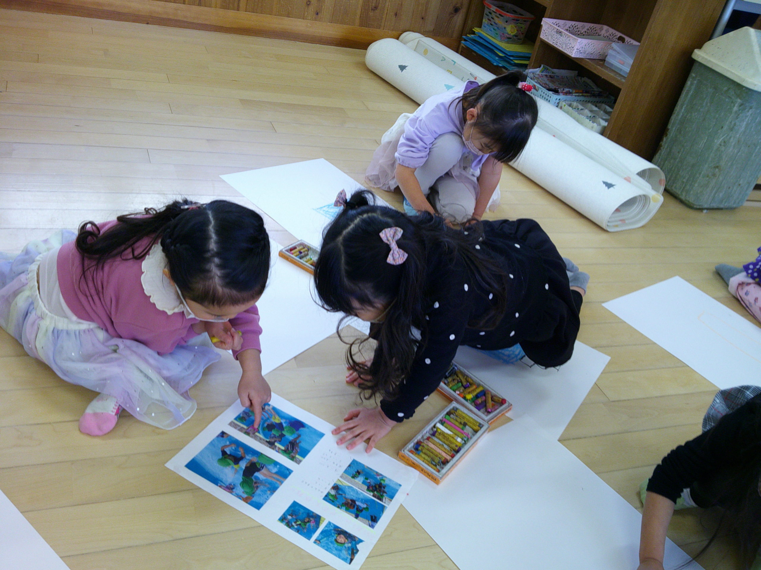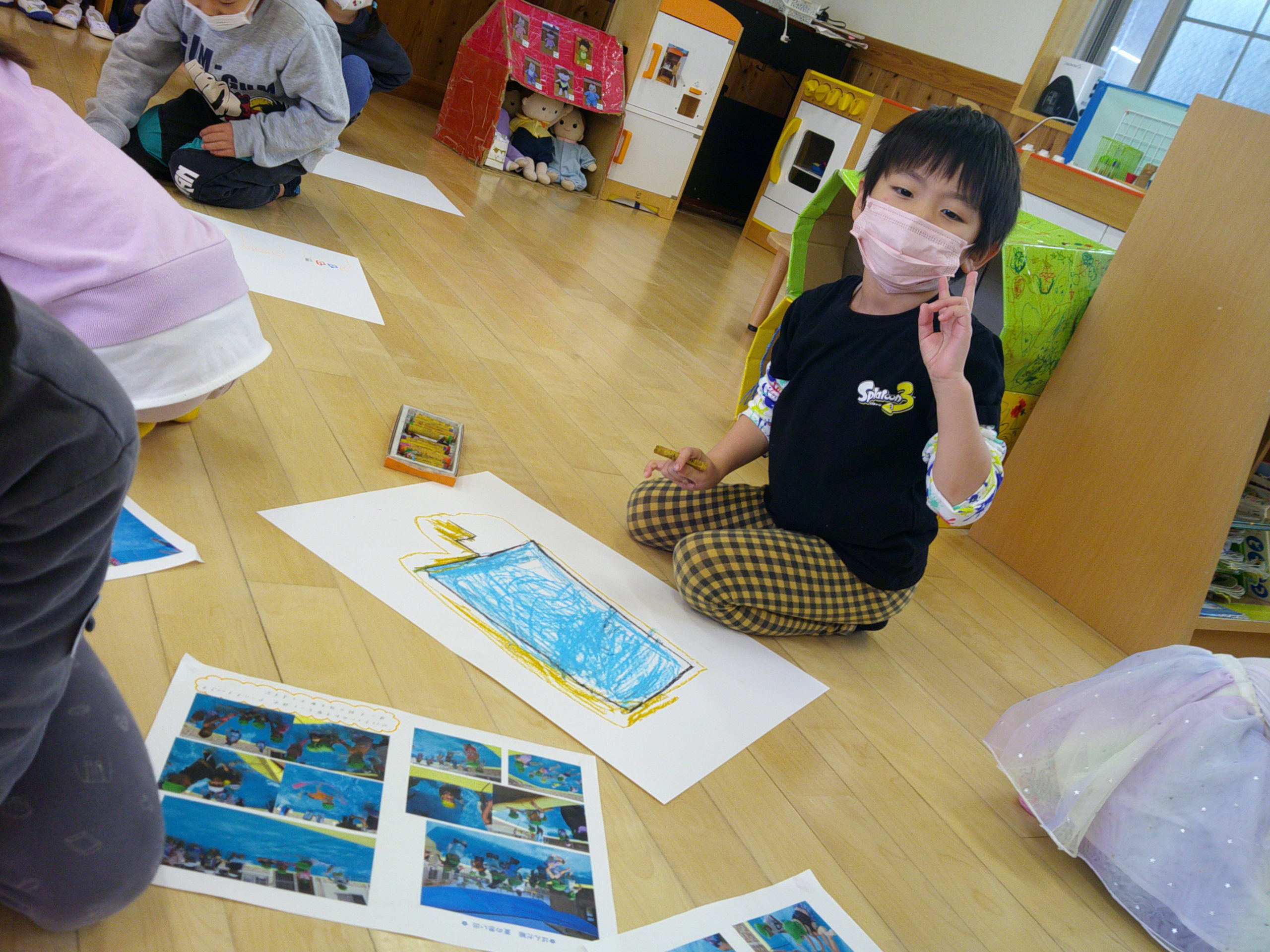 ぱんだ組も残り数週間。進級を前に、「ぱんだ組の1年で一番楽しかったこと」を絵に描きました😊
