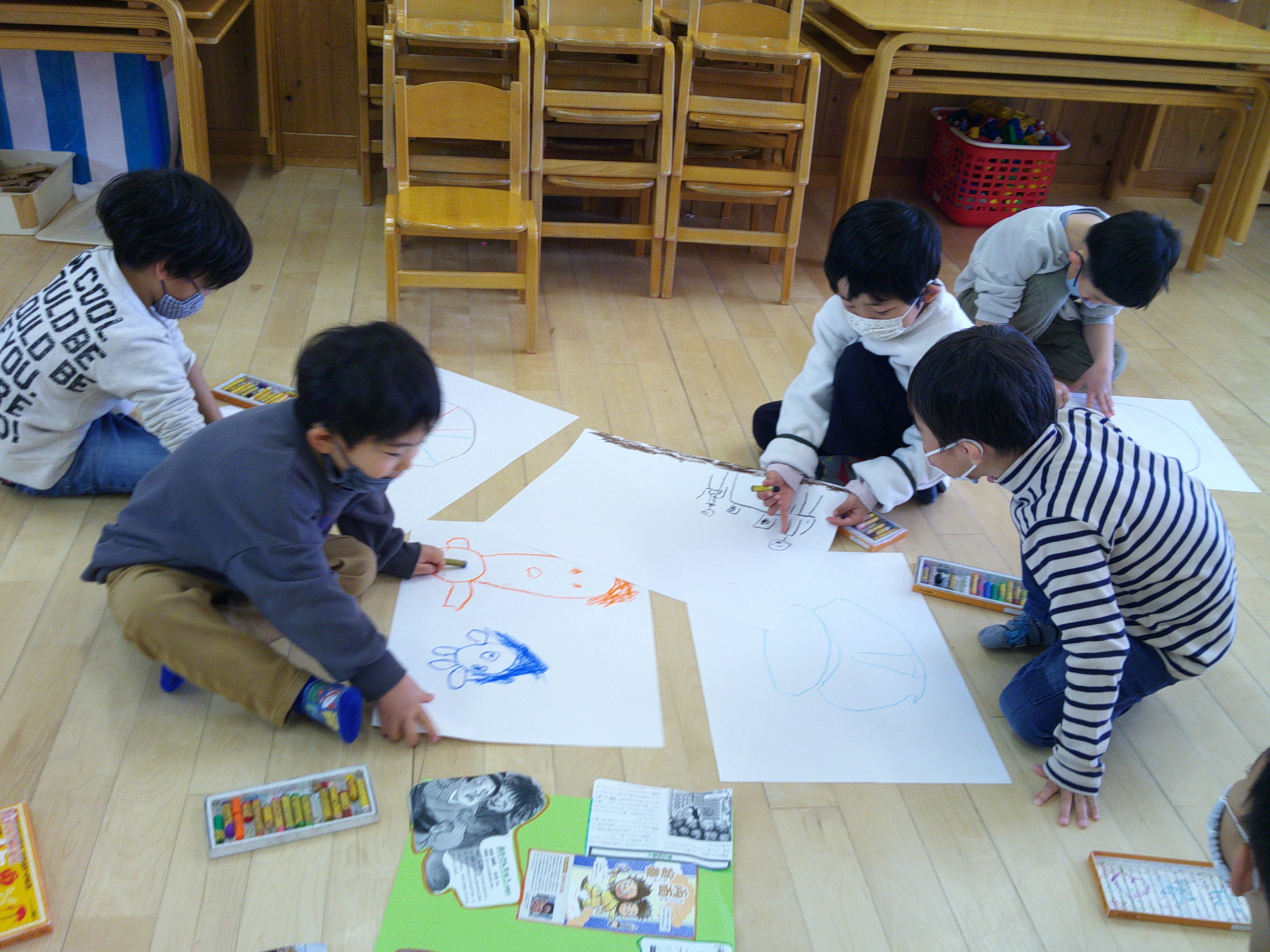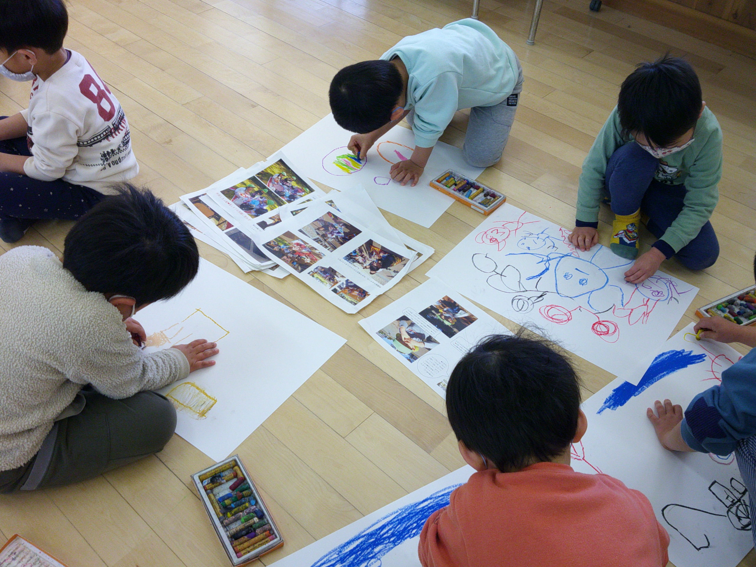 楽しそうに描いている子どもたちの姿を見ていると、ぱんだ組での園生活が本当に楽しかったんだなぁと感じ、私たちも嬉しくなります。