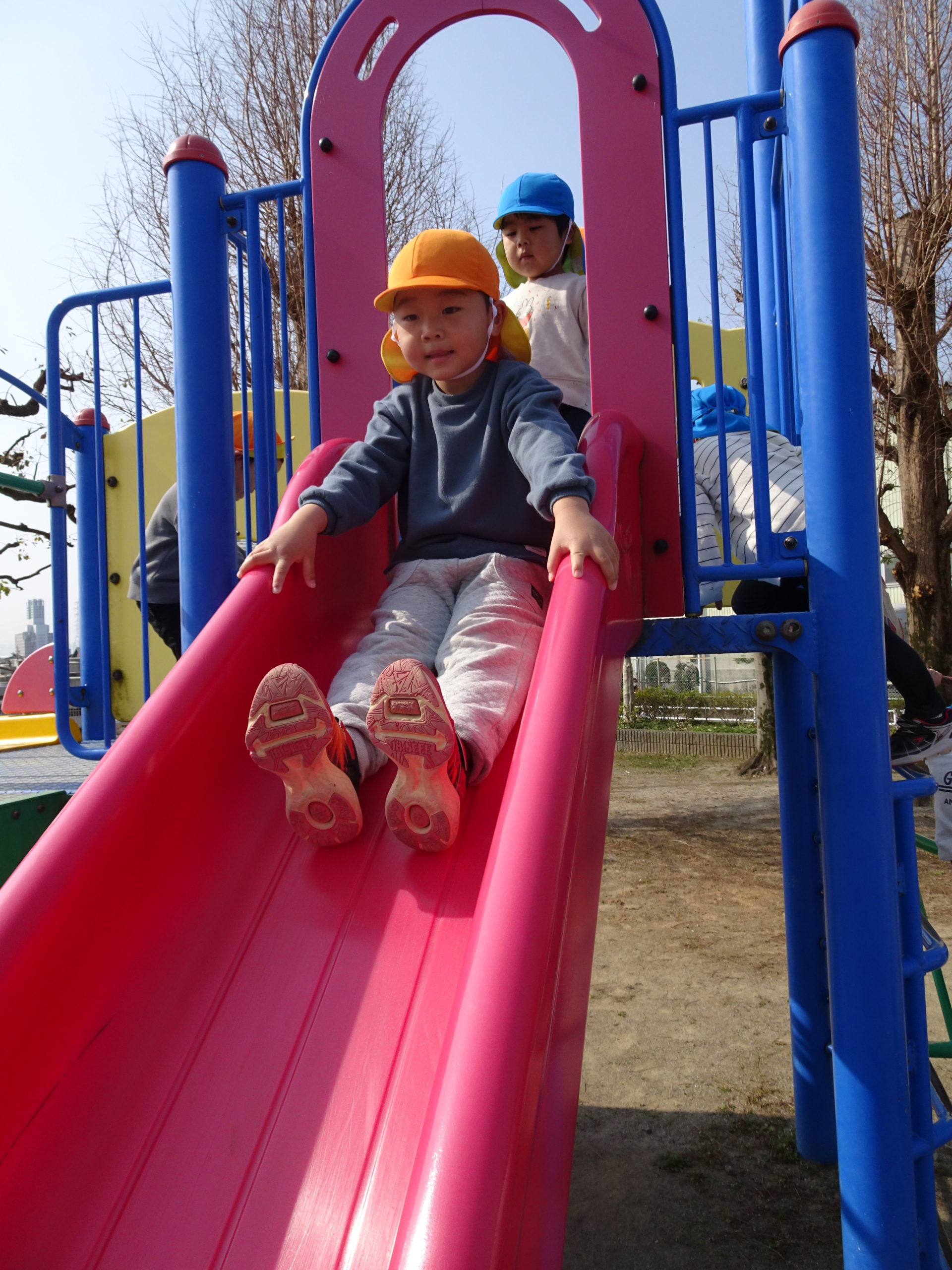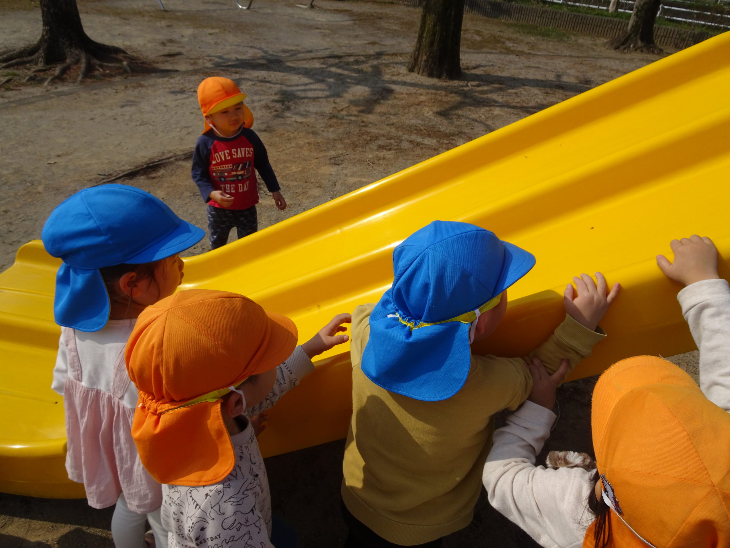 また、滑り台に虫がいるのを見つけると、滑ろうとしているお友だちに、「ちょっと待ってて!虫さんが怪我しちゃうから逃がしてあげよ」と声を掛けている優しい姿もあり、ほっこりしました(*^^*)
