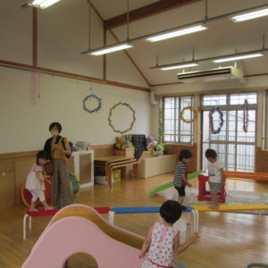 すべり台やトンネルなどのサーキット遊びや、玉入れ、引っ張れ遊びなどを楽しみました♬