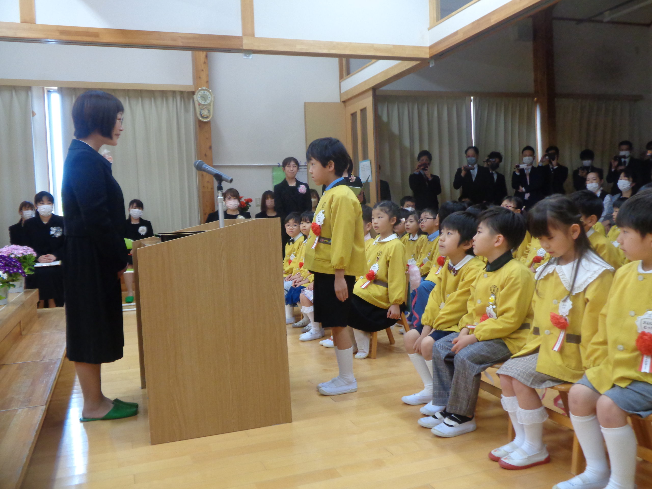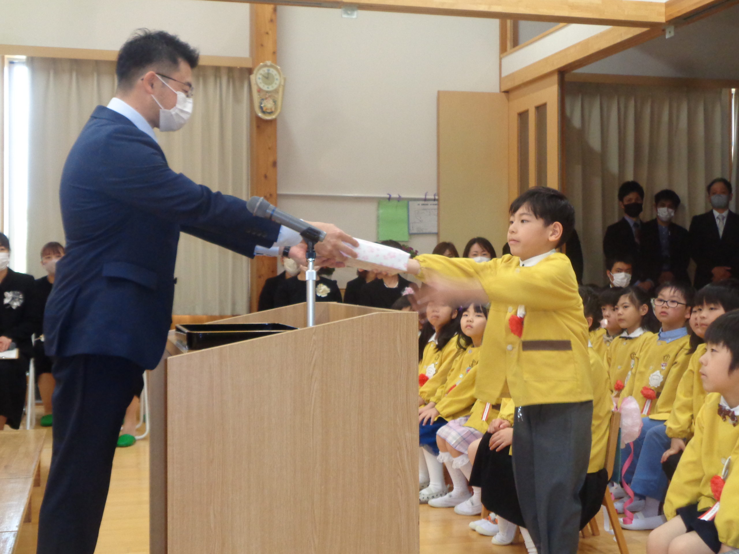 かっこよく卒園証書を受け取る姿に「おおきくなったね。」