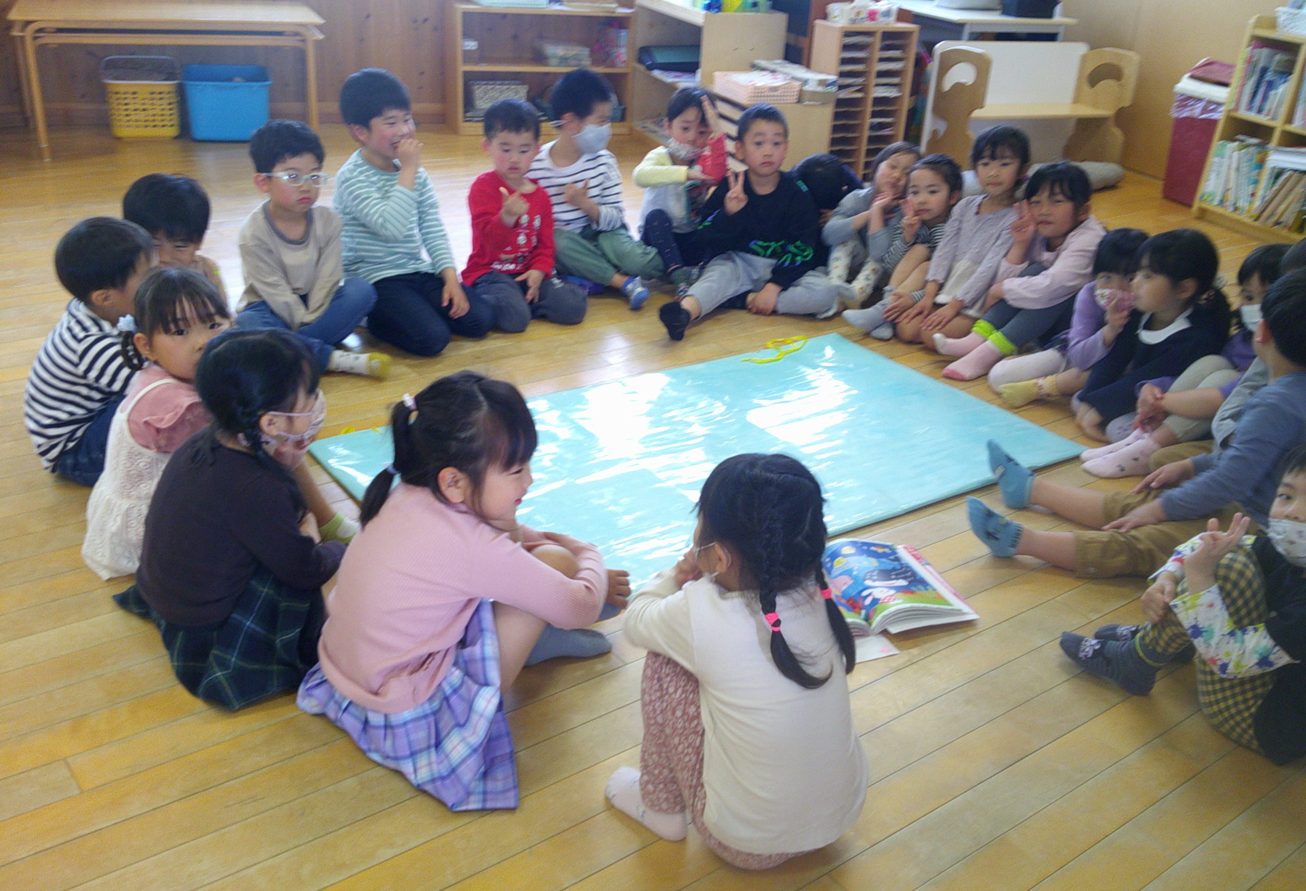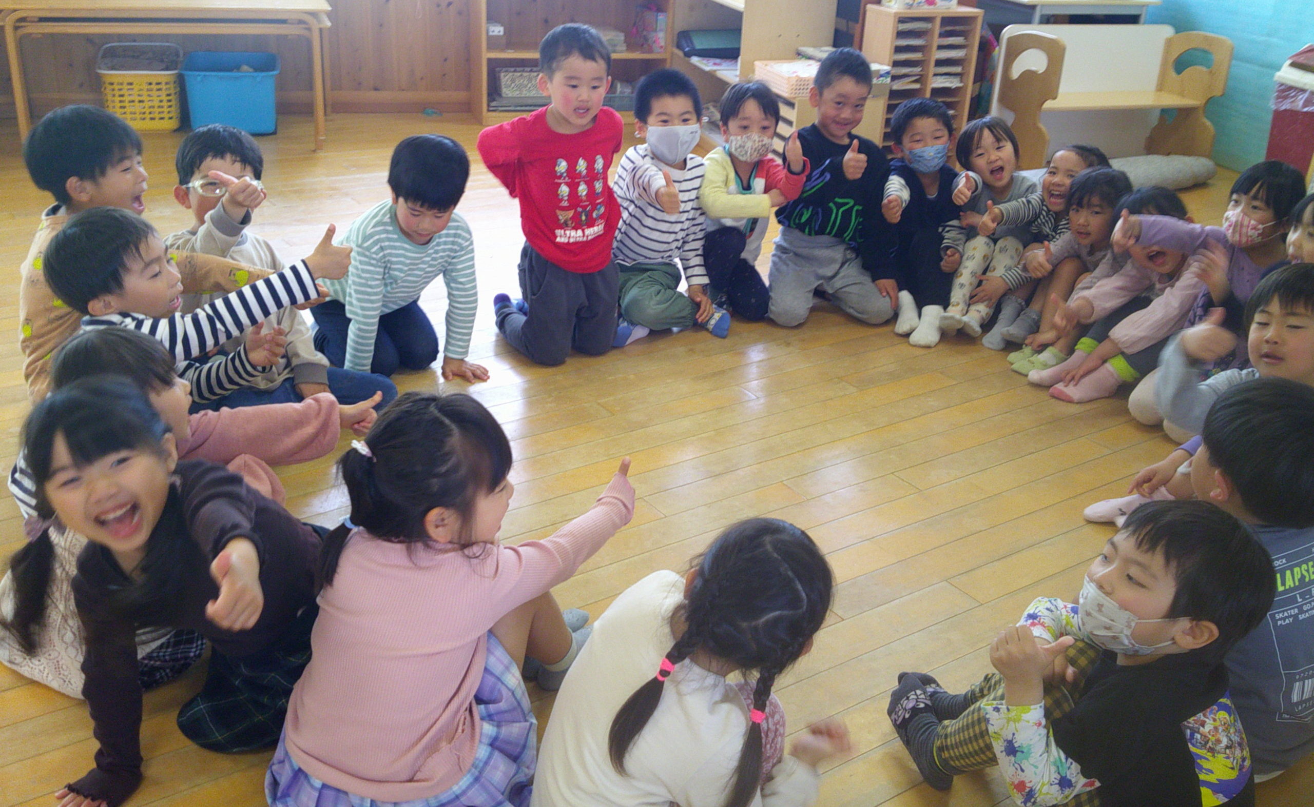 皆で丸くなって、ナイスな考えや思いを伝え合えるといいなと思います😄何より、話し合って自分たちで決めた名前に嬉しそうな笑顔の子どもたちの姿が宝物のように感じる今日のサークルタイムでした❤