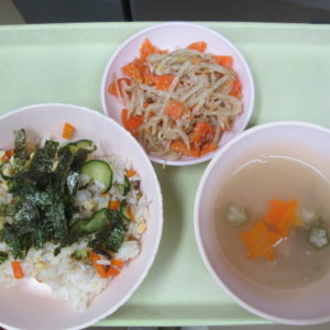 七夕寿司とキラキラスープともやしのごま和えと七夕ゼリーです。