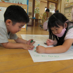 ぱんだぐみでは、大きい紙にクレヨン🖍で絵を描きました✨