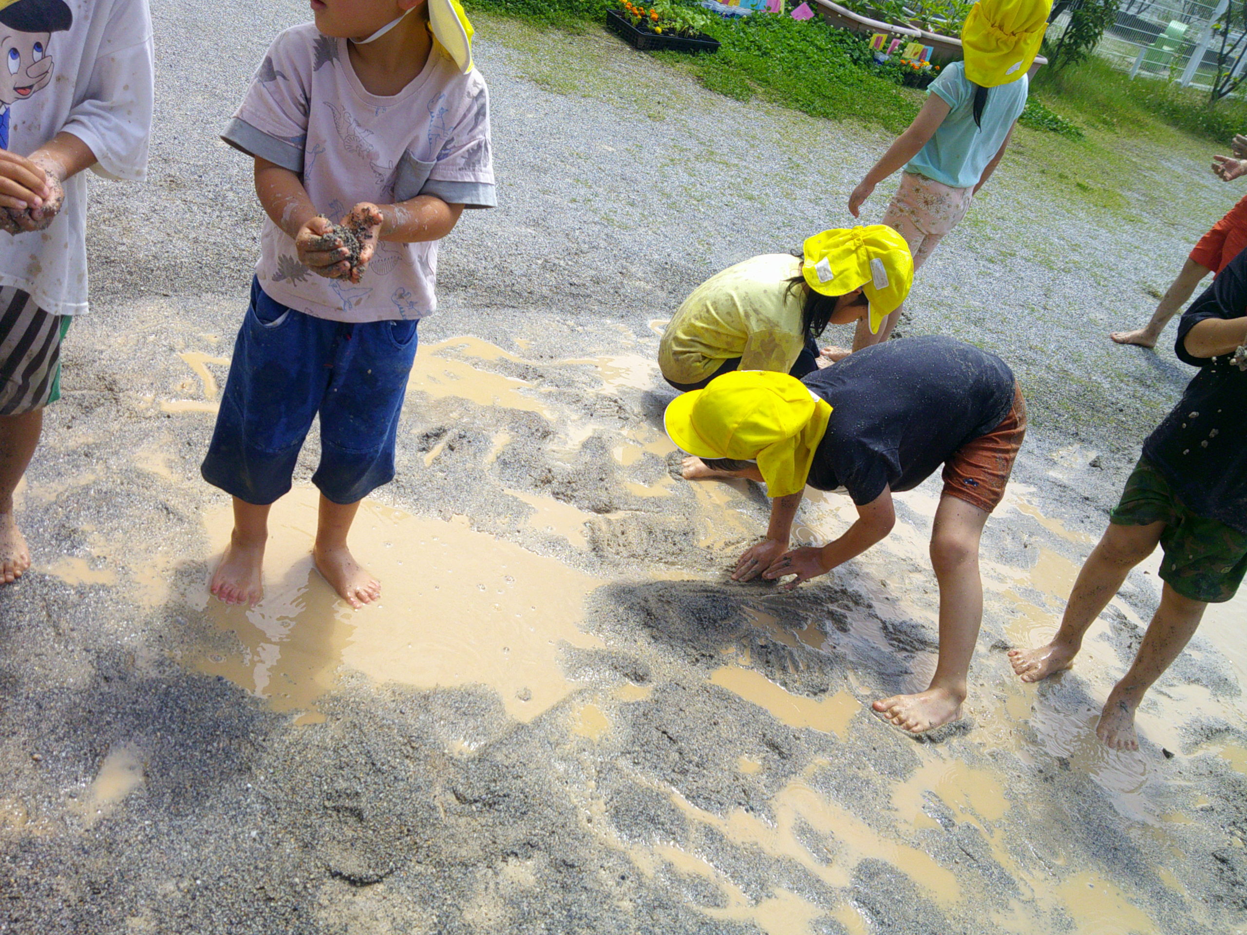 青空のもと、泥の感触を全身で楽しむ子どもたちでした😊