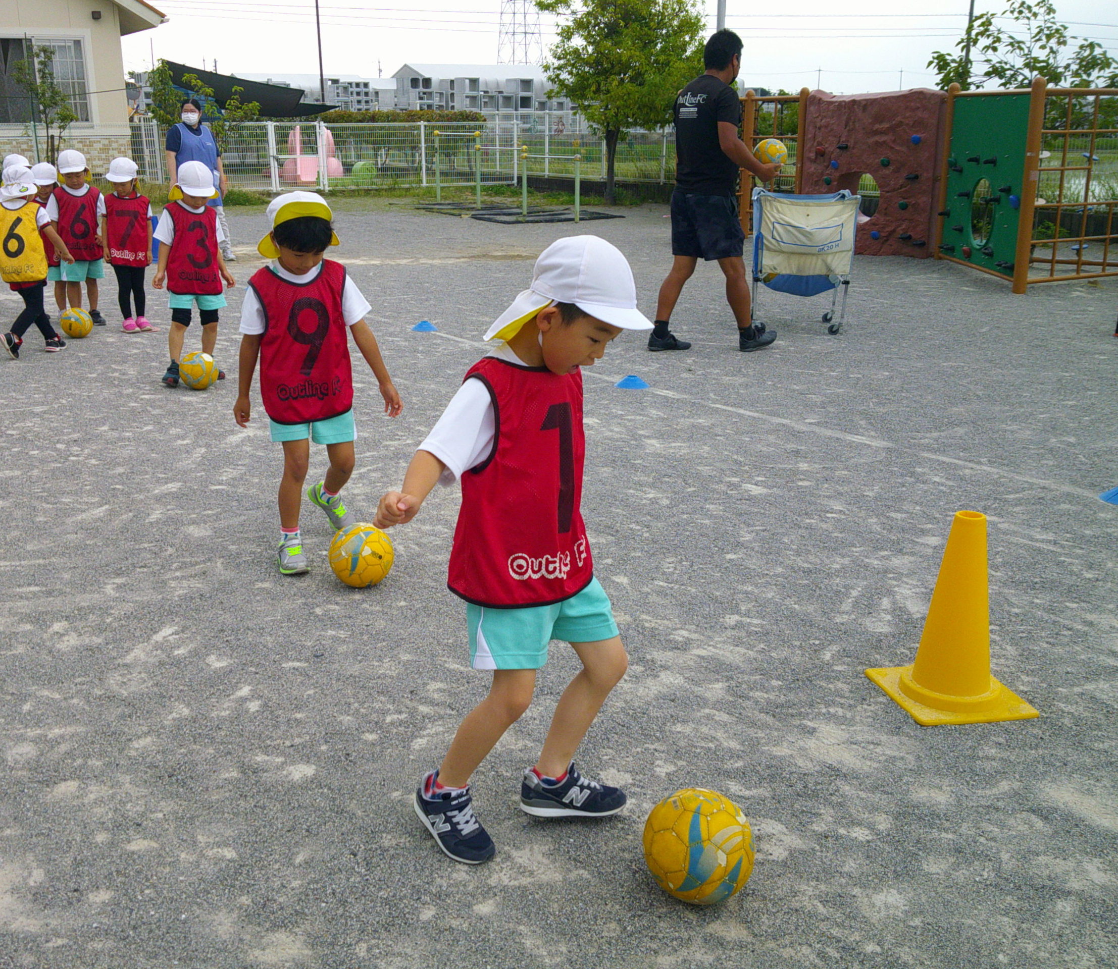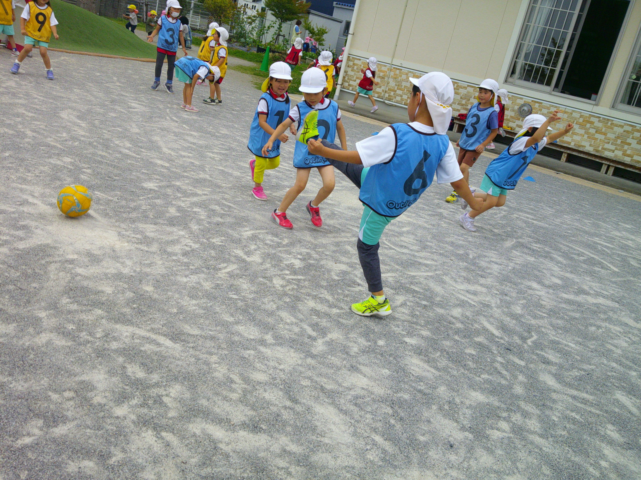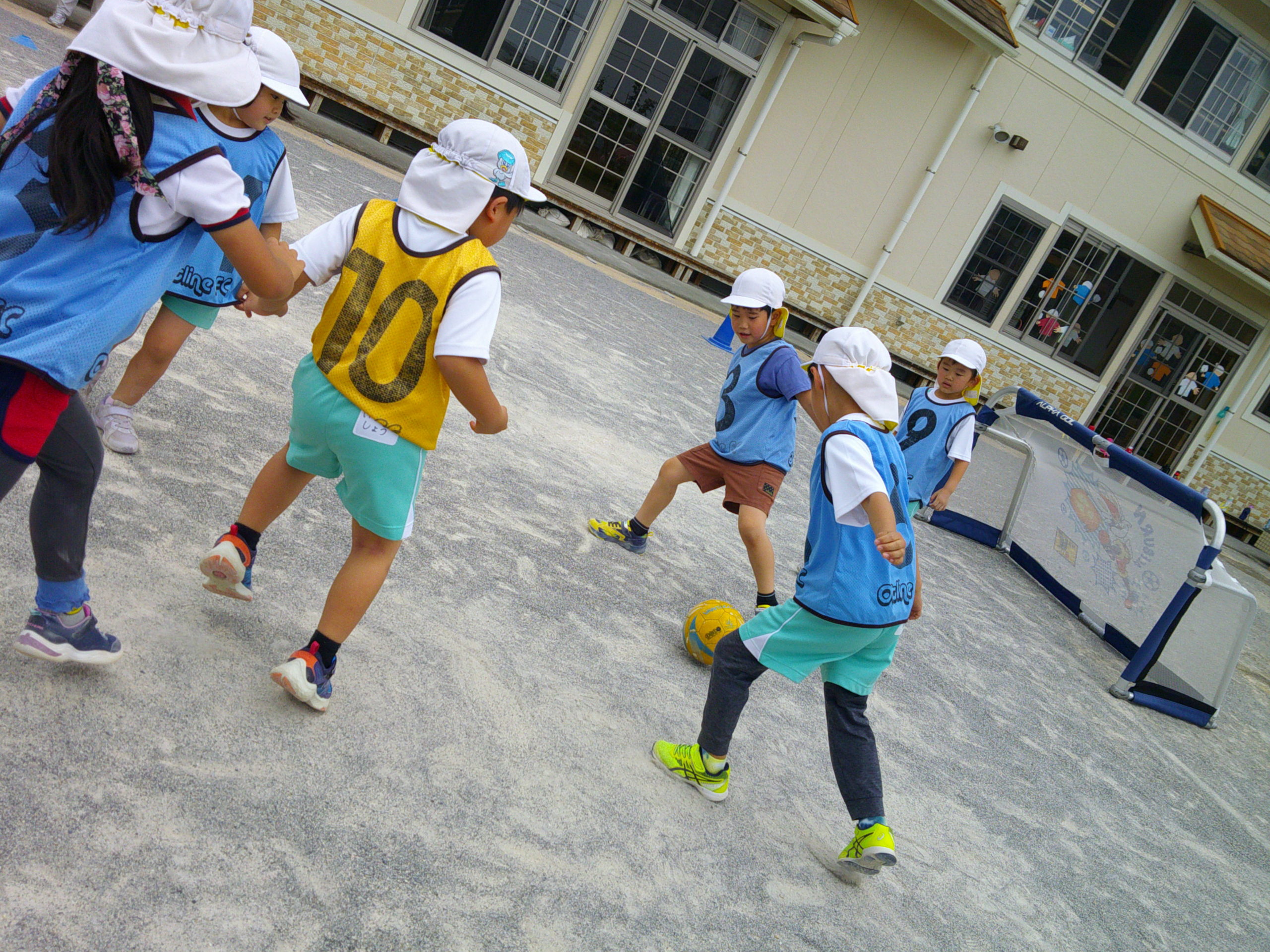 ボールを蹴る姿が一段とたくましくなった3回目のサッカー教室。汗を沢山かきながらも、とても楽しそうな子どもたちでしたよ😆保育室に戻り、「今日のコーンを倒したシュートかっこよかったよね💖」「転んだのにさ、すぐボールおいかけてくとことか、かっこよかったぁ💖」と嬉しそうに話す保育士に、照れ笑いを浮かべつつ、お着替えタイムを過ごす子ども達でした♡