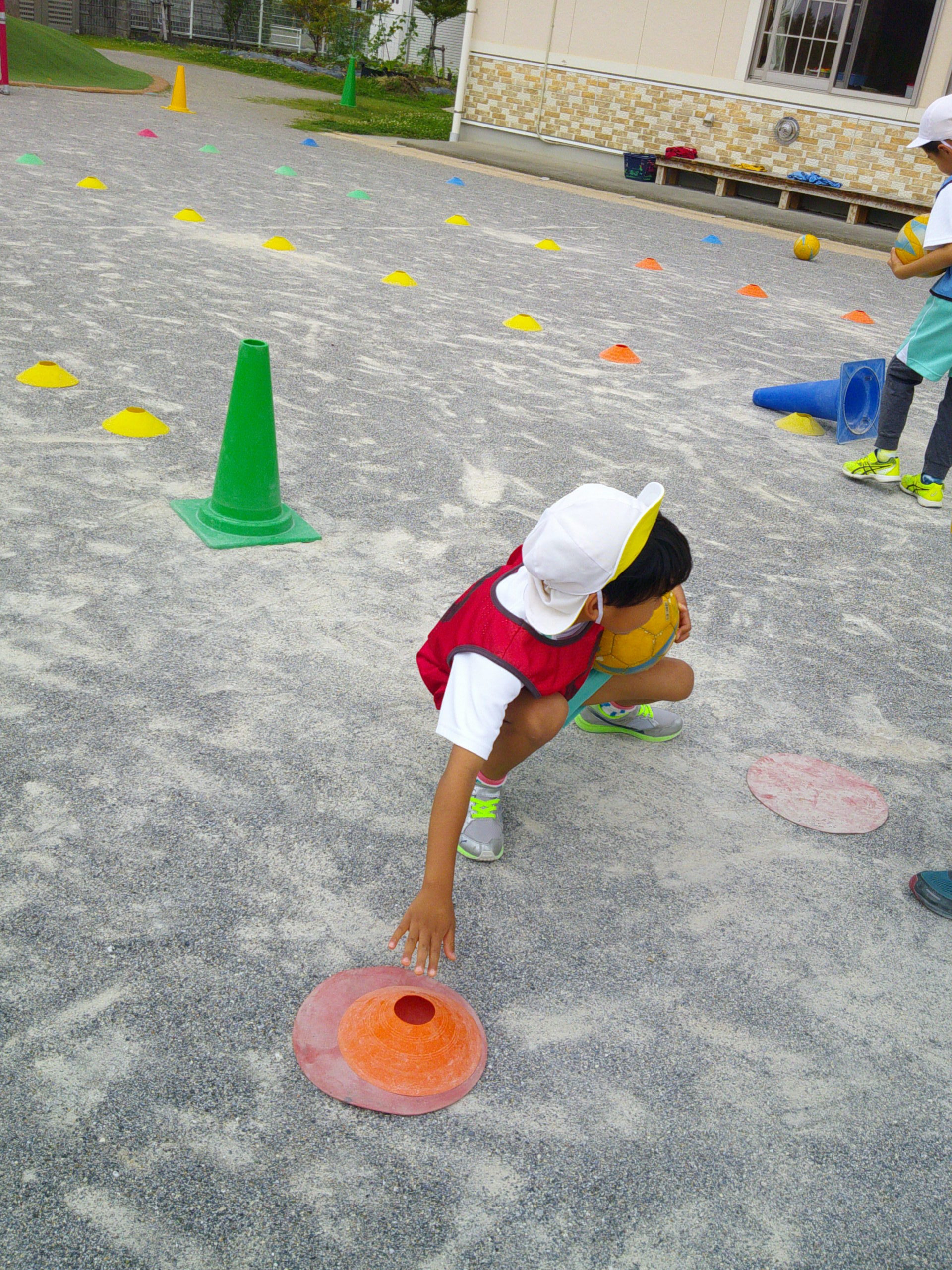 コーンのカーブが難しいけど、う~ん。どうしょうかなと考えながら、上手にコーンを回っていきます😊
