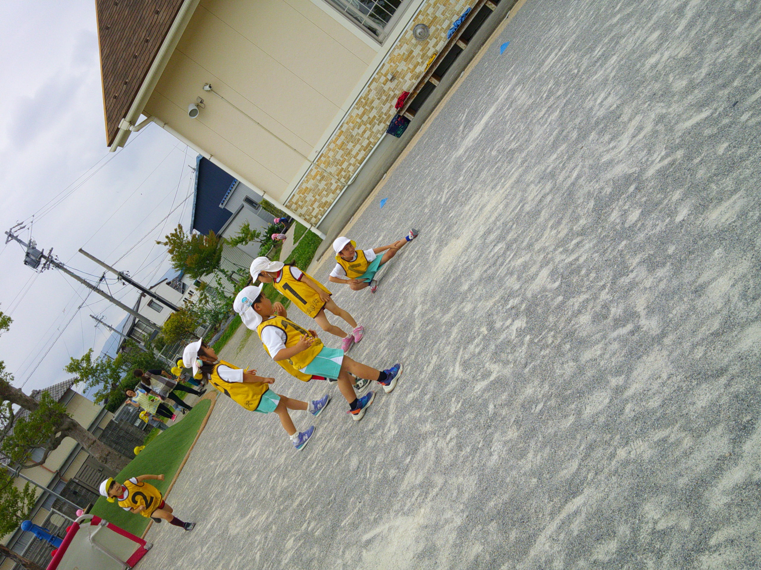 次は、両足跳びリレー!!ちょっとずつ難しくなるけど、大丈夫!元気に大ジャンプを見せてくれます😆