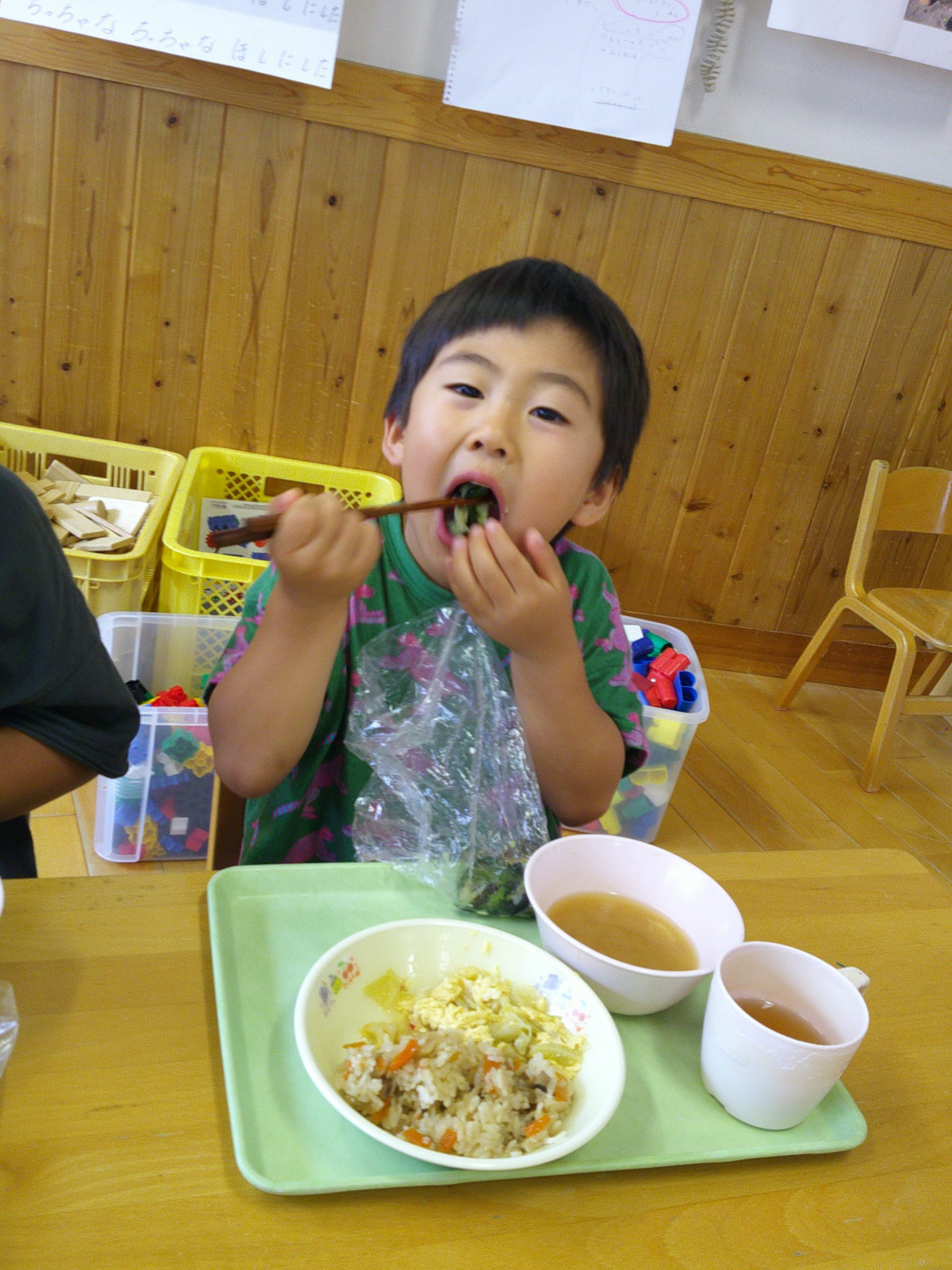 自分たちで作ったなすときゅうりの塩もみは、今日の給食と一緒に頂きます😄
