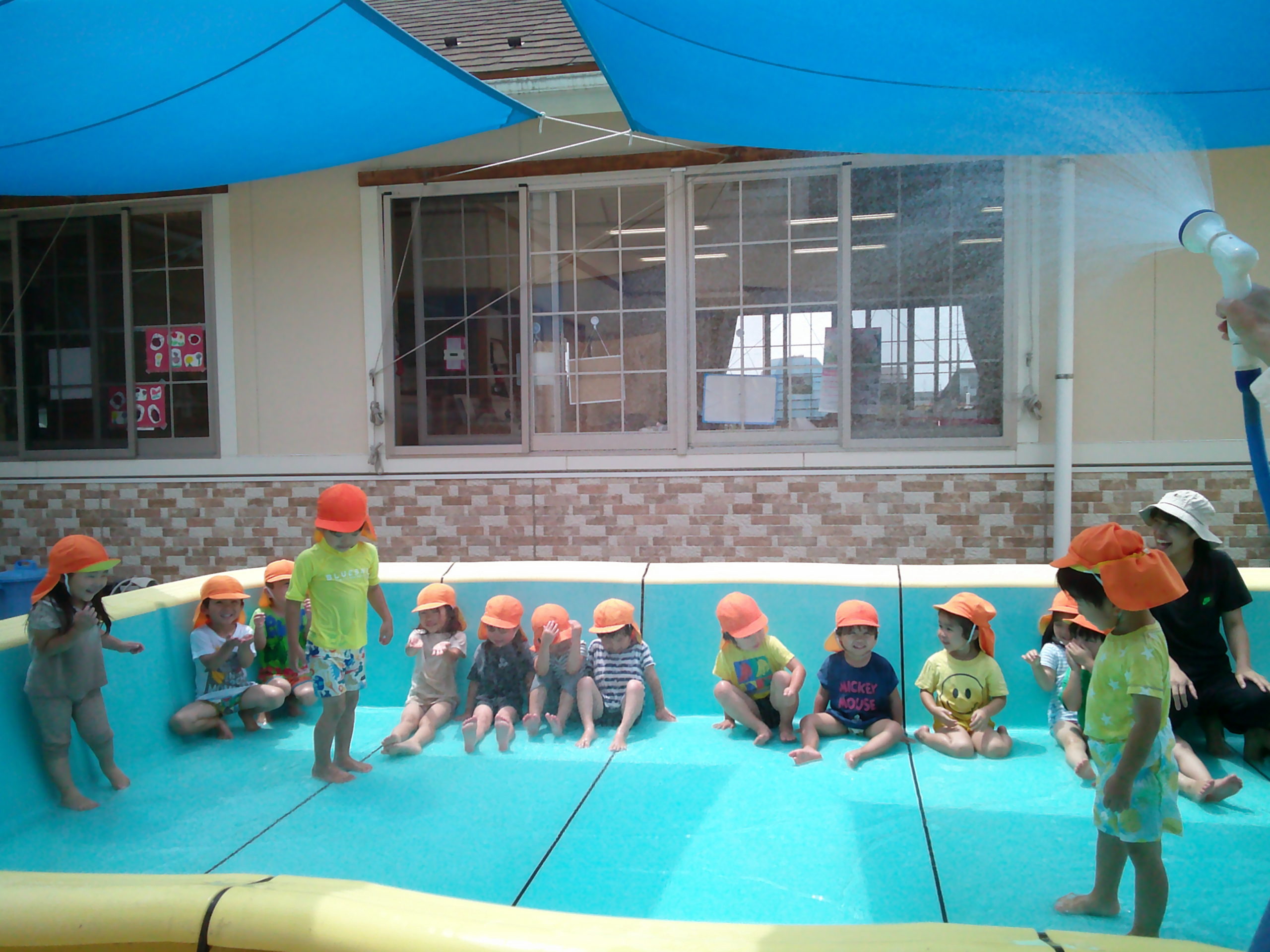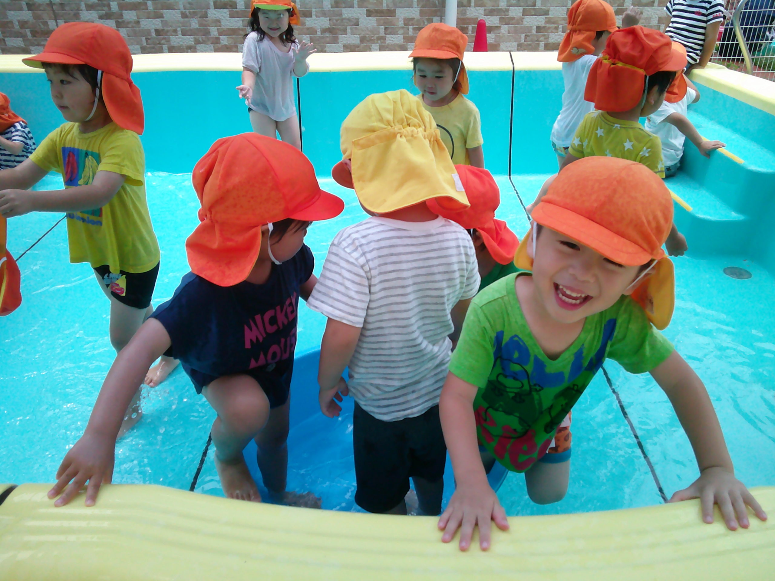 「あっ!プールある!」「先生見てー!!」「早く入りたい♡」