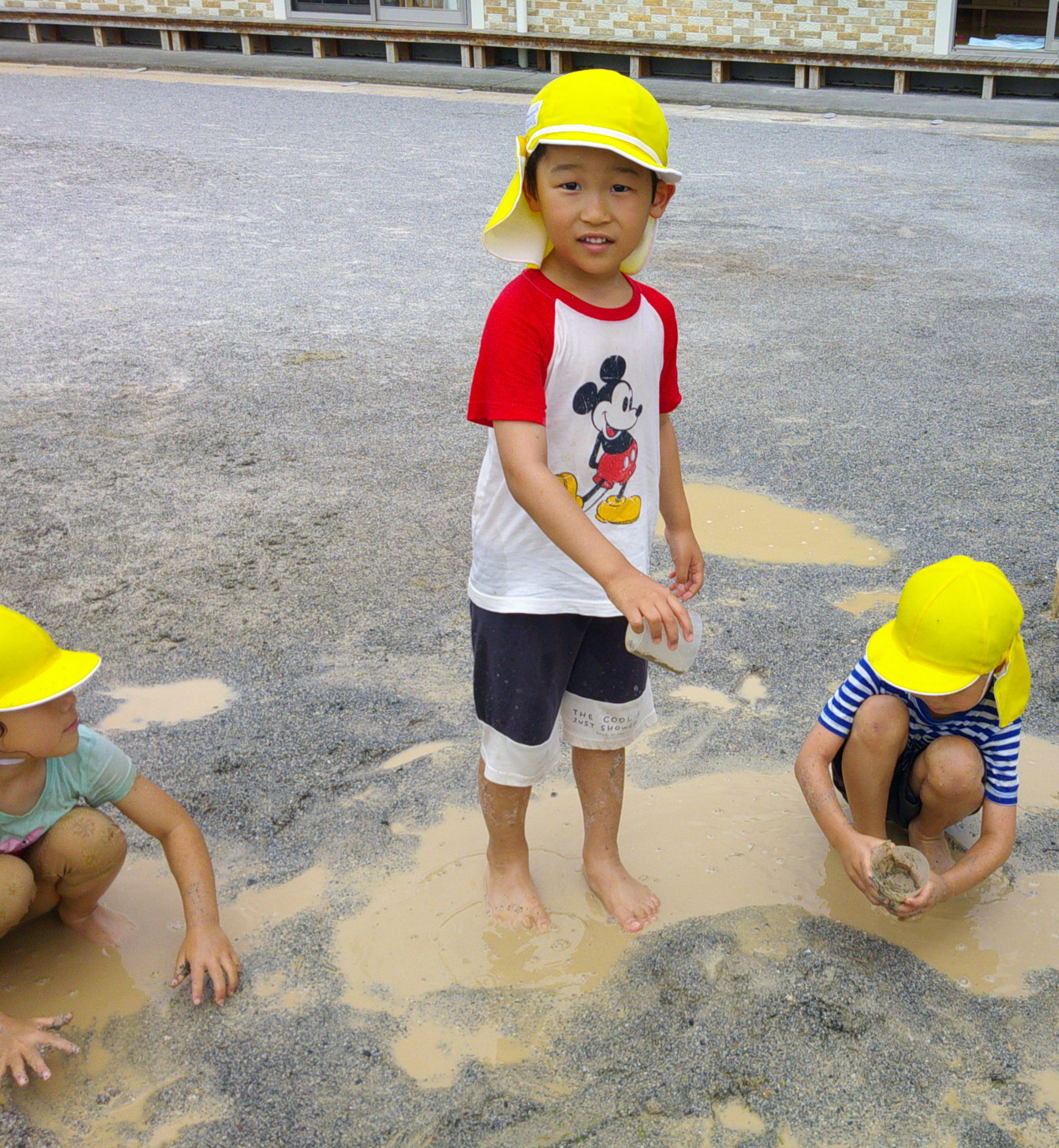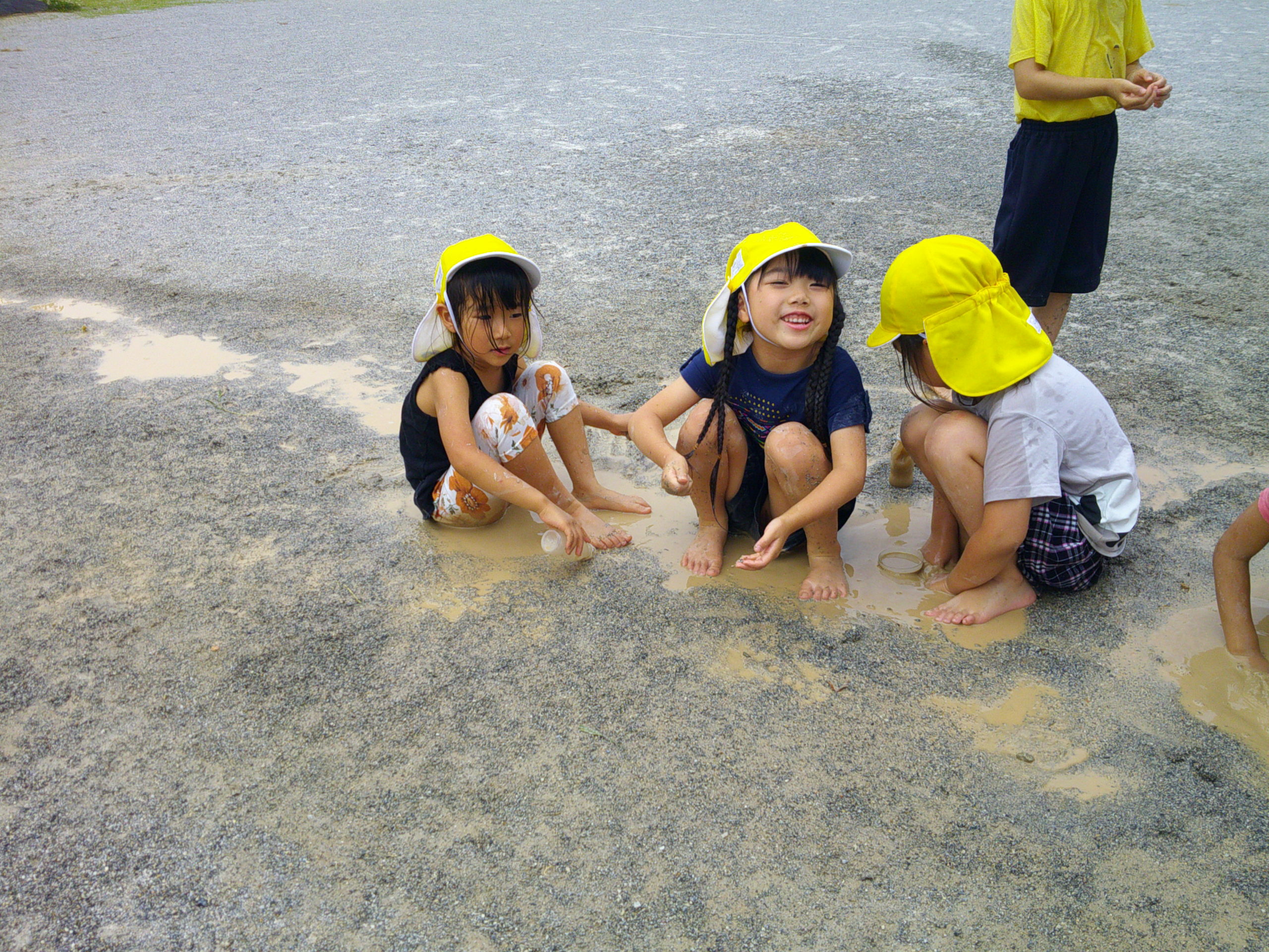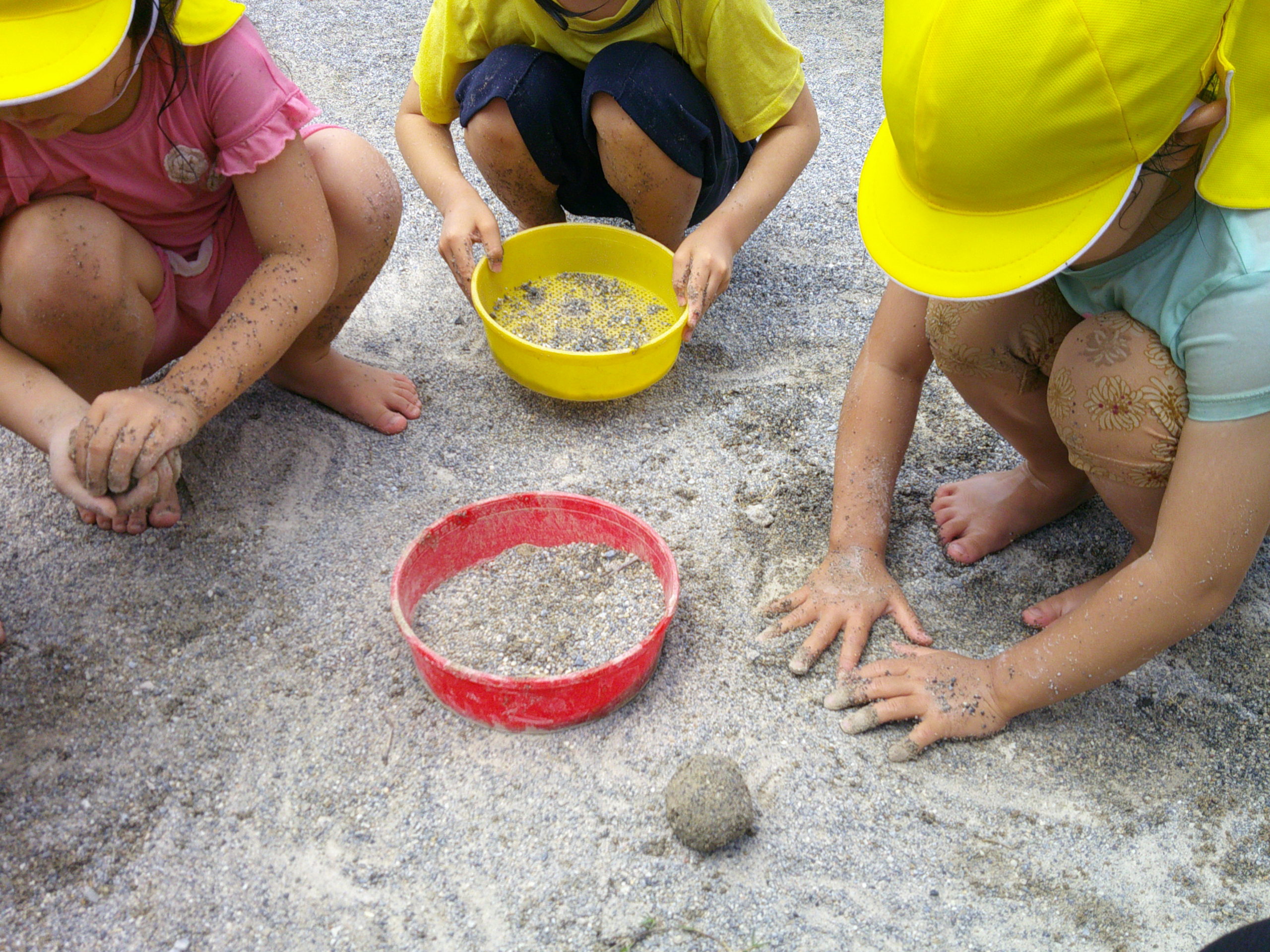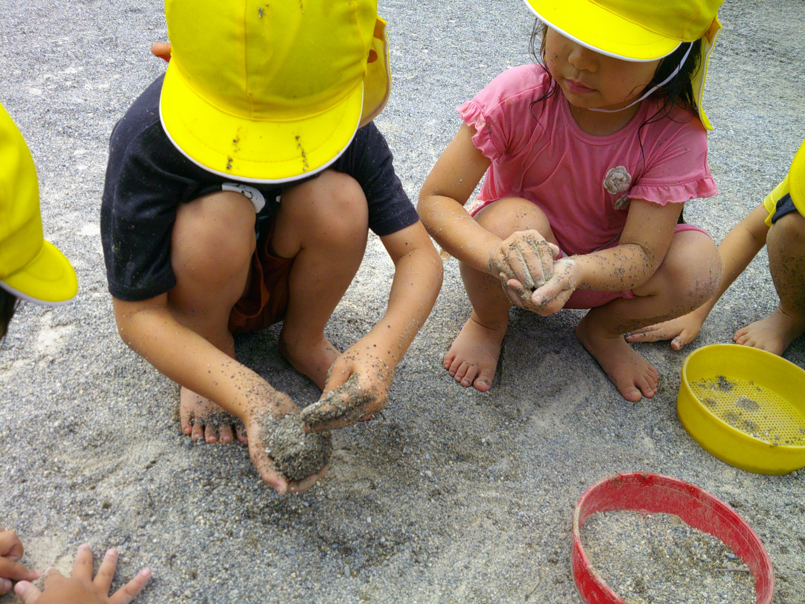 泥団子部隊の傍らでは、「泥屋さんで~す!どうぞ~!」と言いながら、泥団子に最適な泥を集めてくれる子どもたちの姿がみられました!