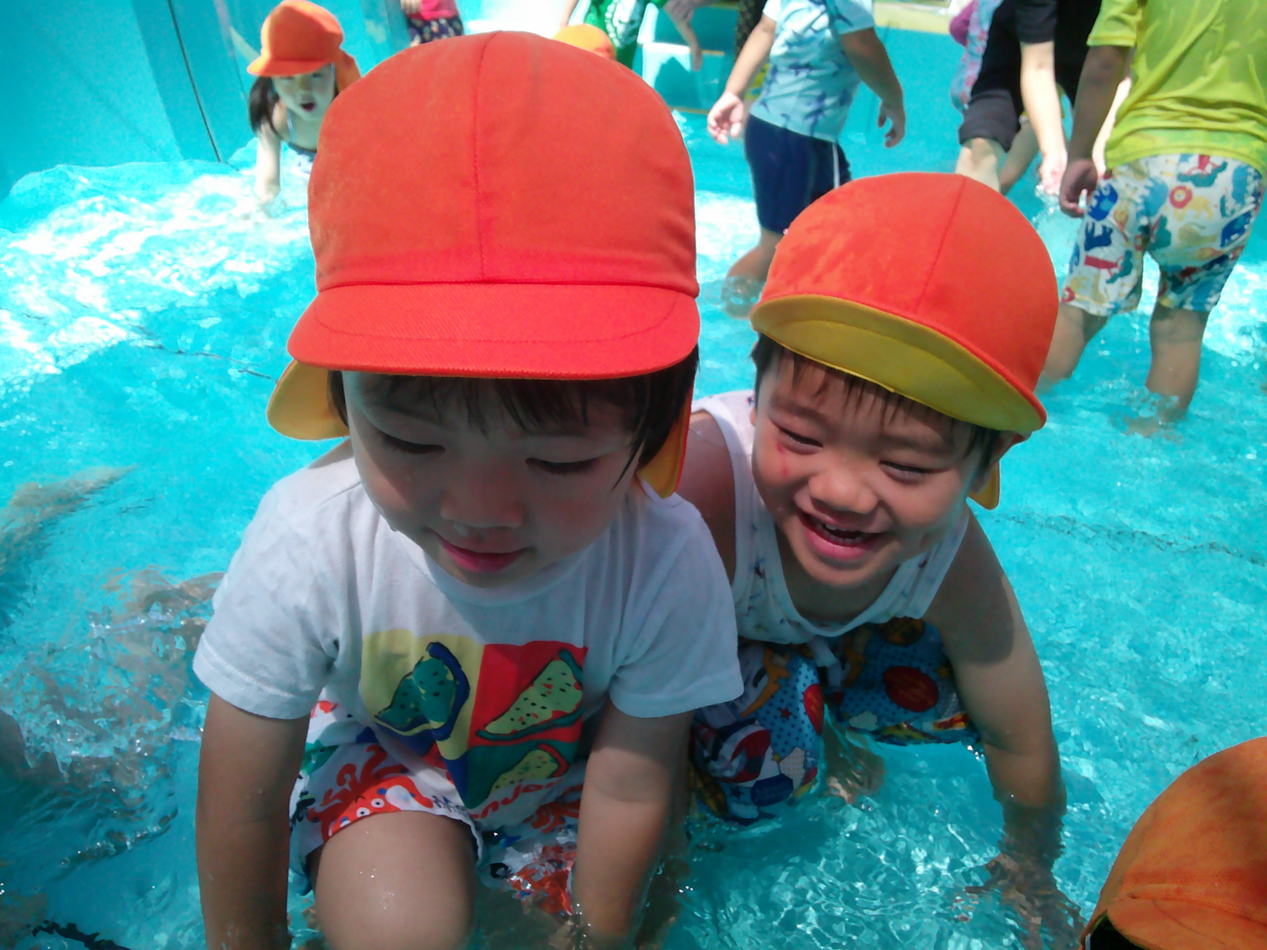 朝からプールに水が入っている!とワクワクしていた子どもたち♬