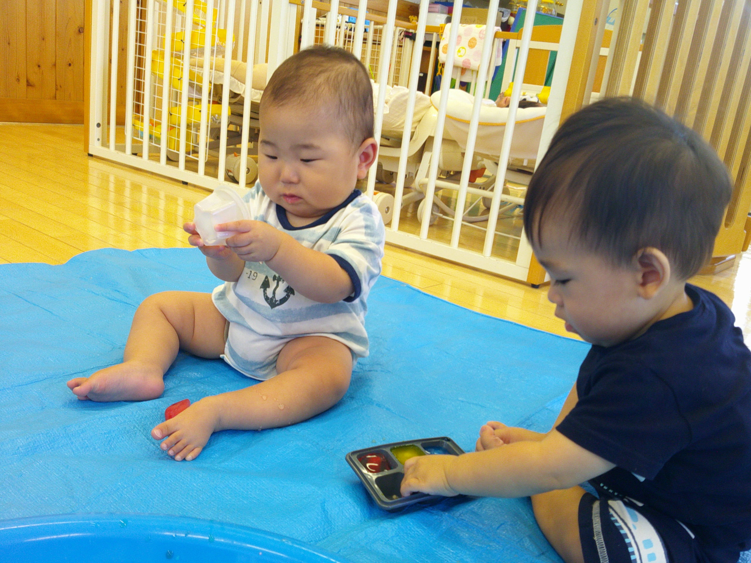夏になり、感触遊びもたくさん経験してきたてんとうむしぐみ・・・🥰