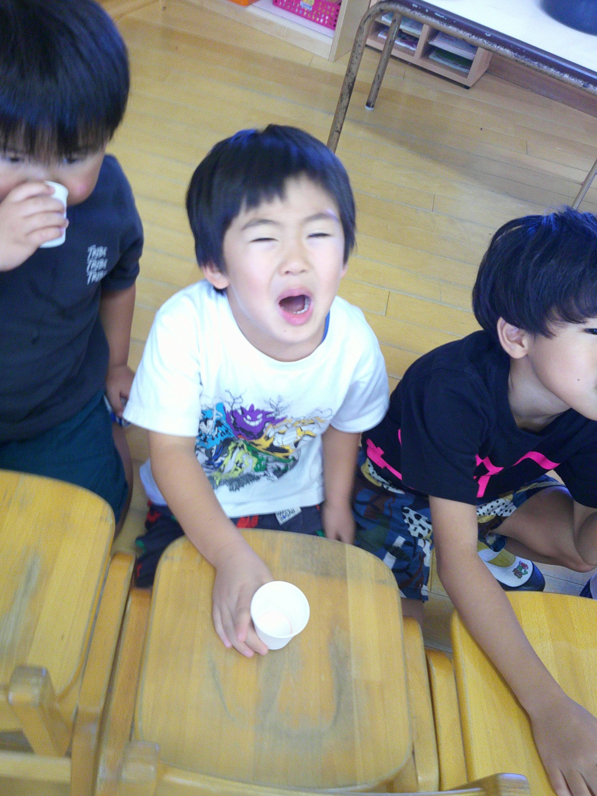 「甘い!」「はじめがすっぱくてぇ。。あっ!あとから甘い!」と口々に感想を伝えながら嬉しそうな子どもたち。