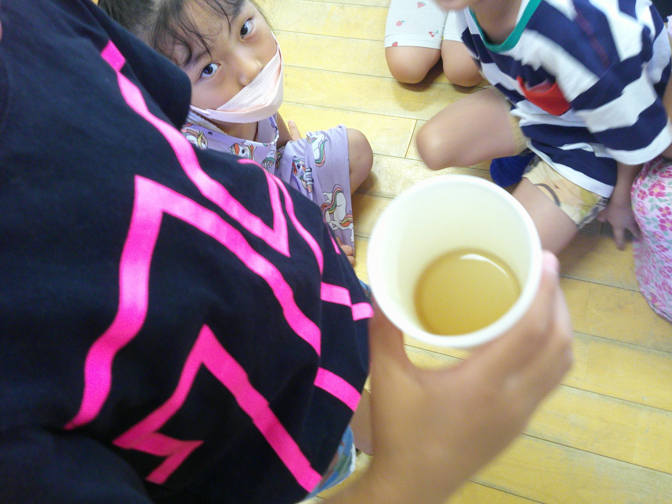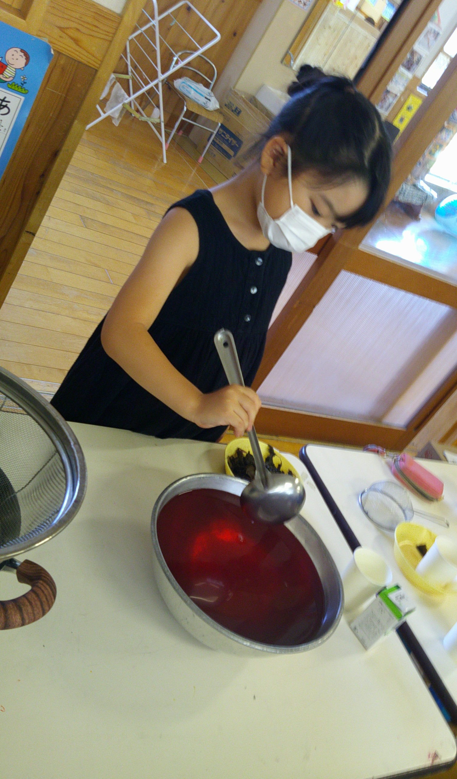 保育士も子どもたちも、ドキドキしながら調理したしそジュース。とっても美味しく飲むことができました😊