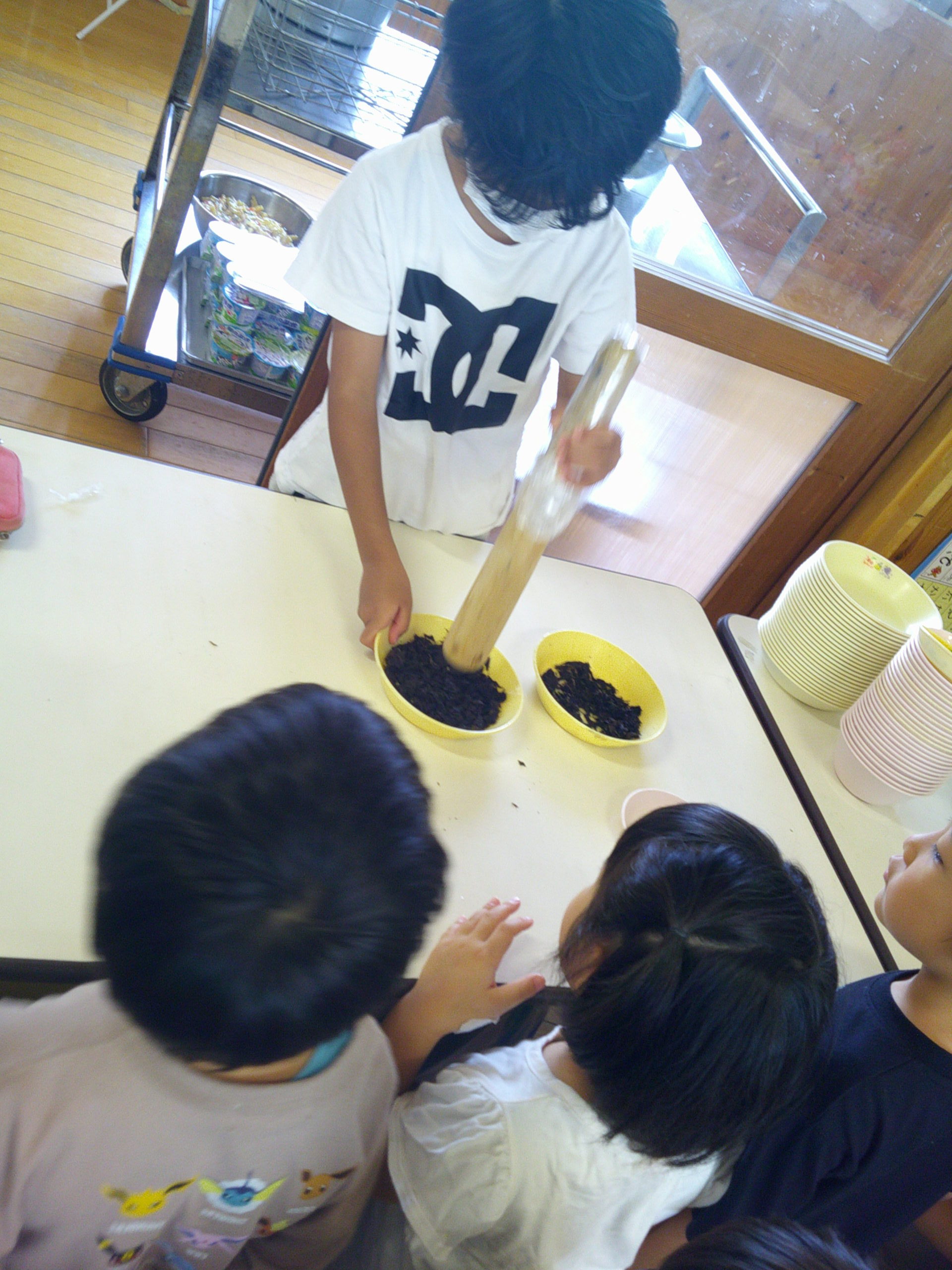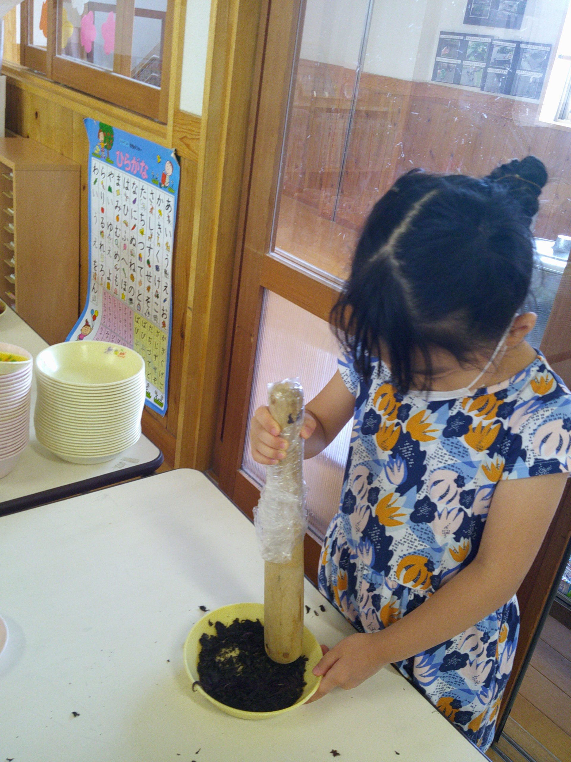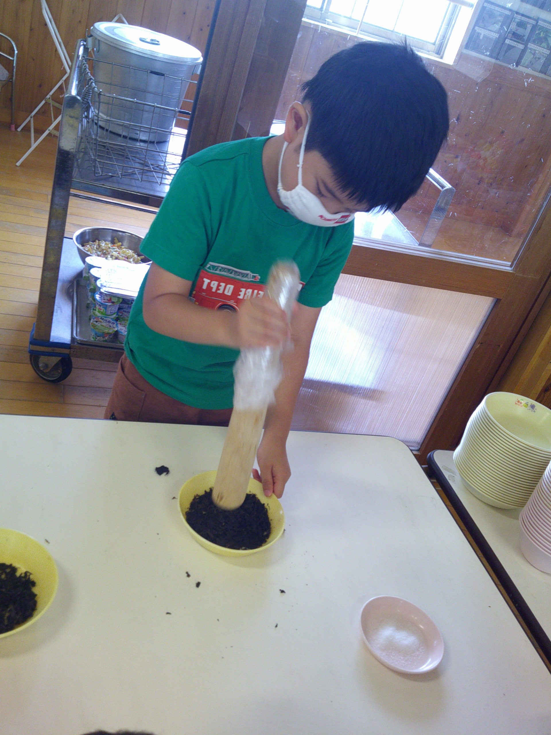 しそが細かく粉末状になってくると、「これ!ふりかけやぁ!」と歓声の上がる子どもたち!