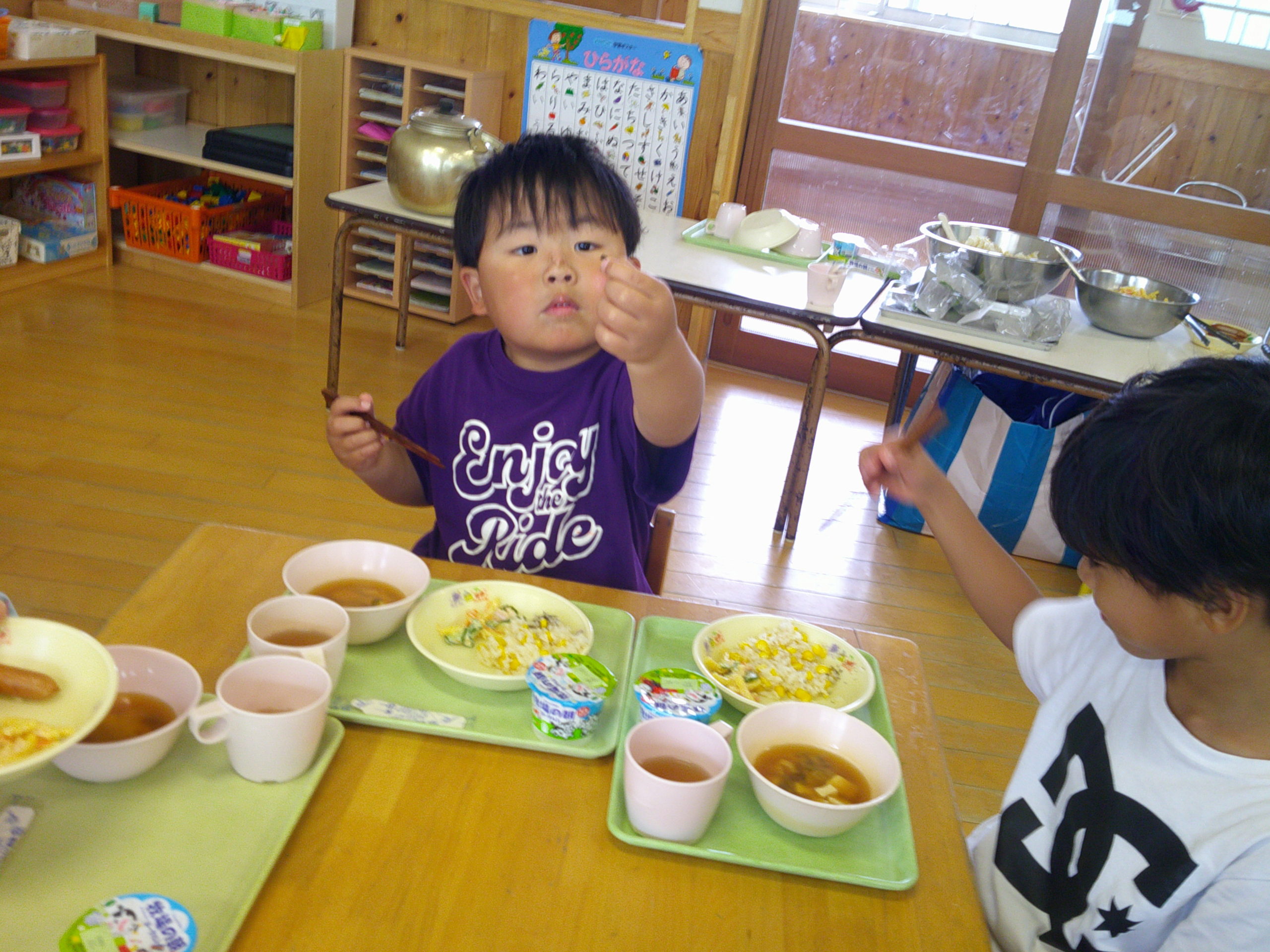 「先生、このしそで最後の一粒や」と男の子。大丈夫、おかわりがあります♡