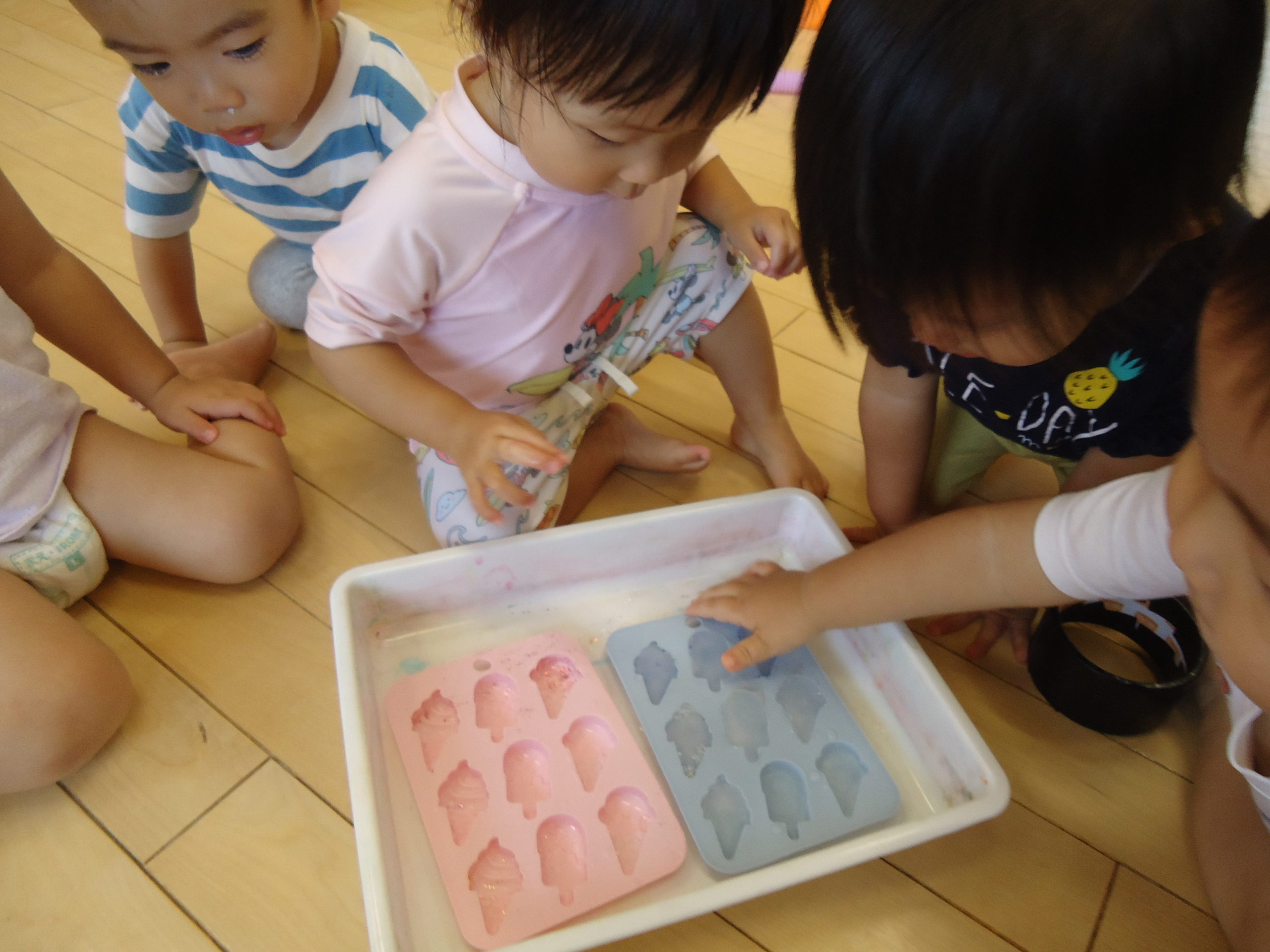 今日はお外へ行けない子も室内で氷に触れました🎵