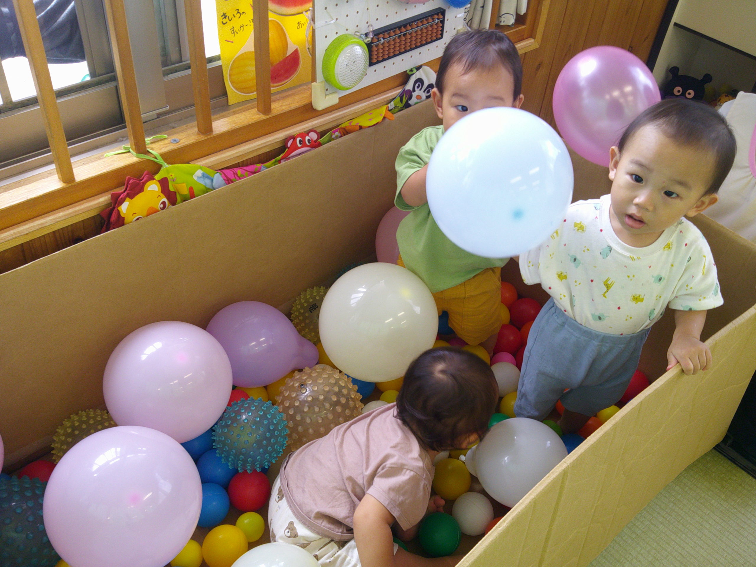 色とりどりの風船に囲まれて遊びました!