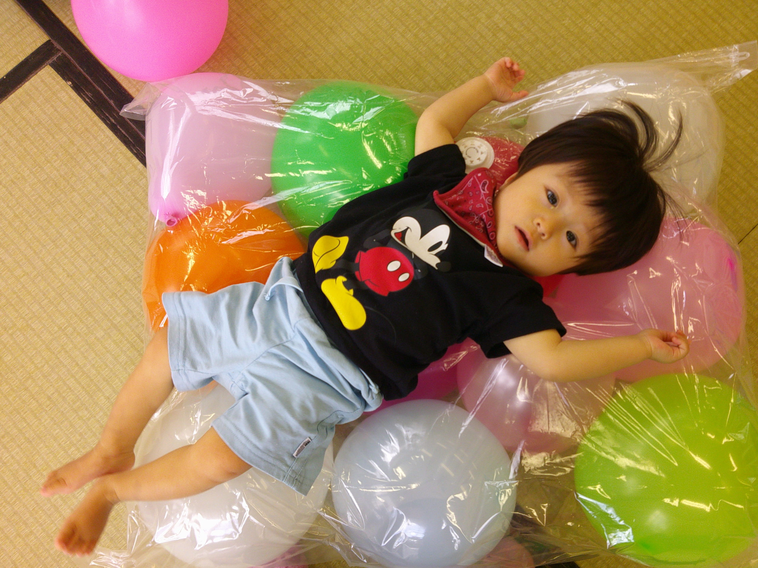風船布団にゴロンと寝転がってみたり・・・
