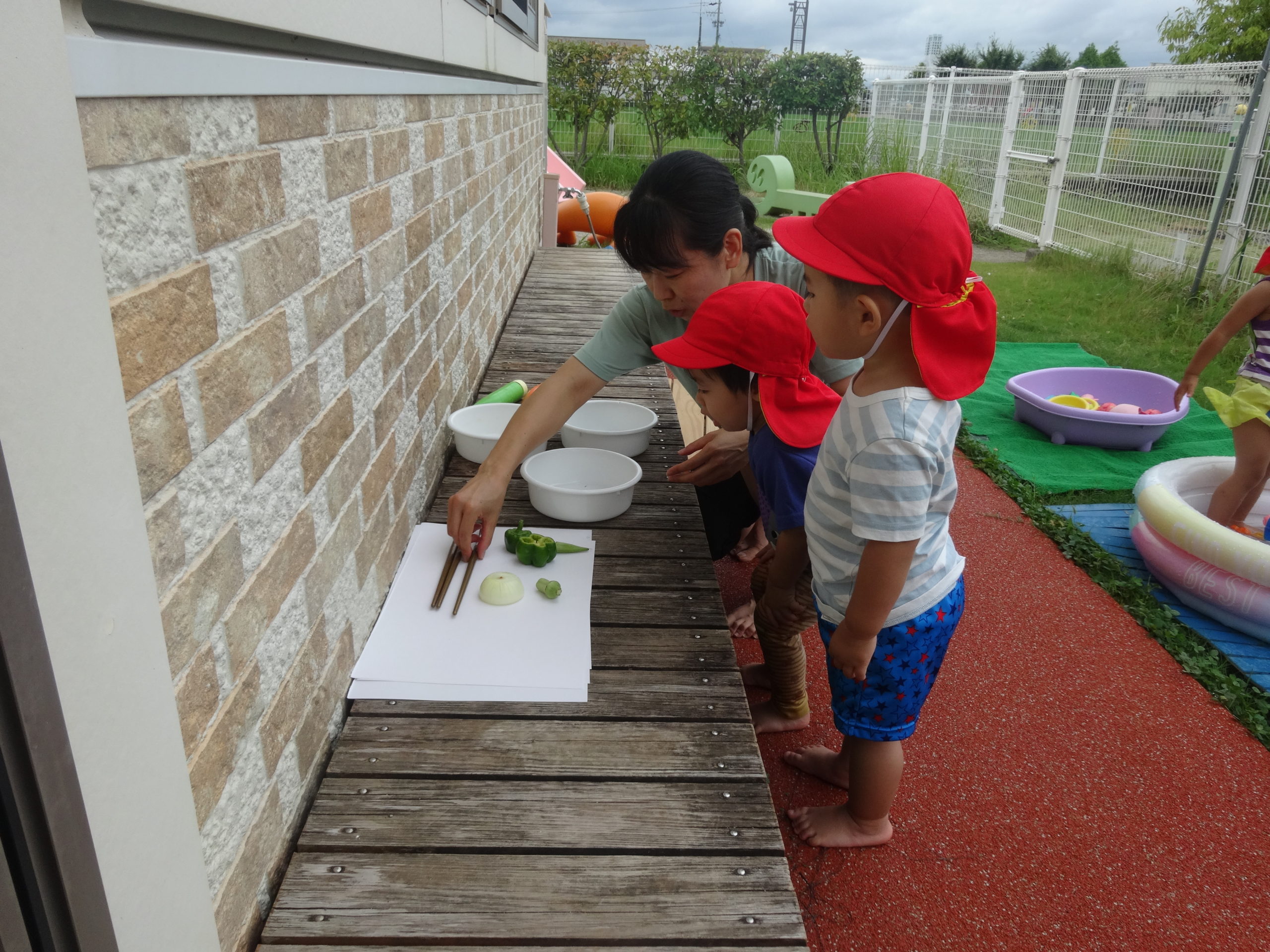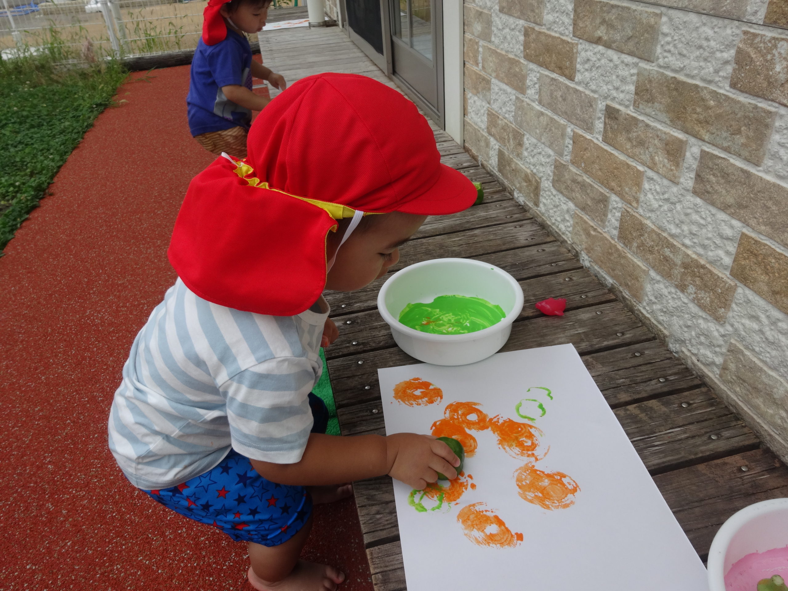 ひよこ組で野菜スタンプをして遊びました。