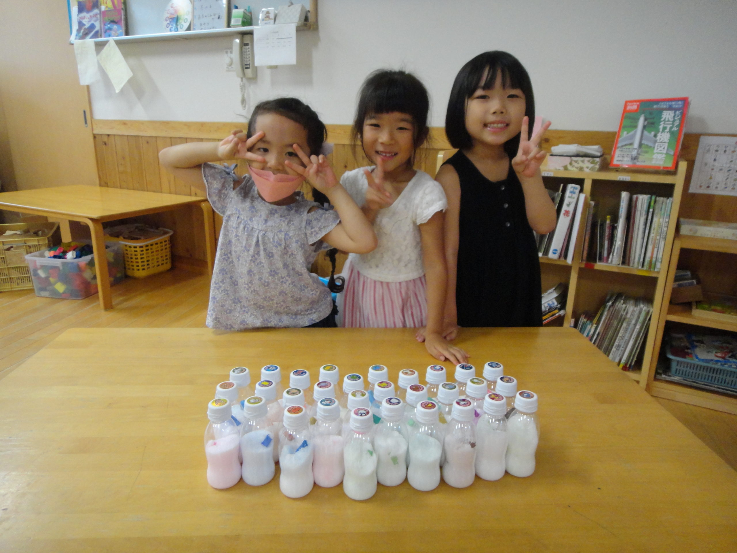 ジュースは振れば振るほど色が変わるので、ご家庭でも色の変化を楽しんでくださいね(*^-^*)