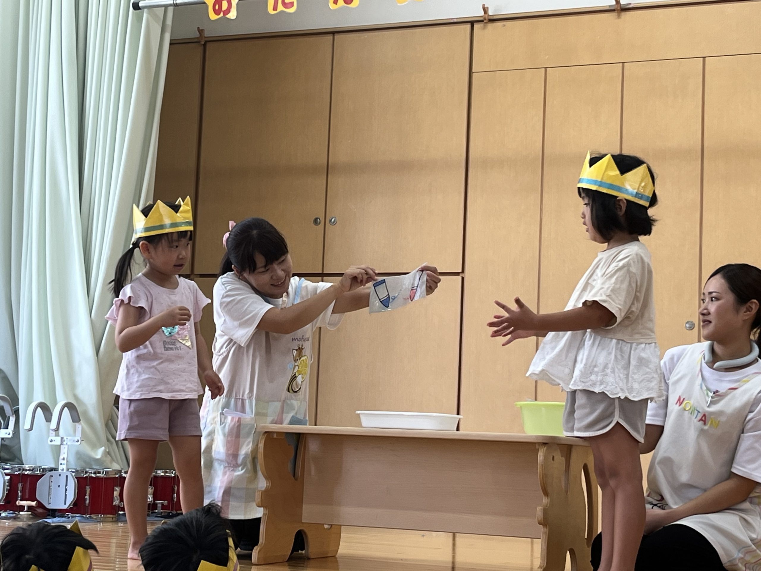 園長から絵本のプレゼントです💖みんな待ちきれないようでサッともらって座って中身を見る姿がかわいらしいですね😊