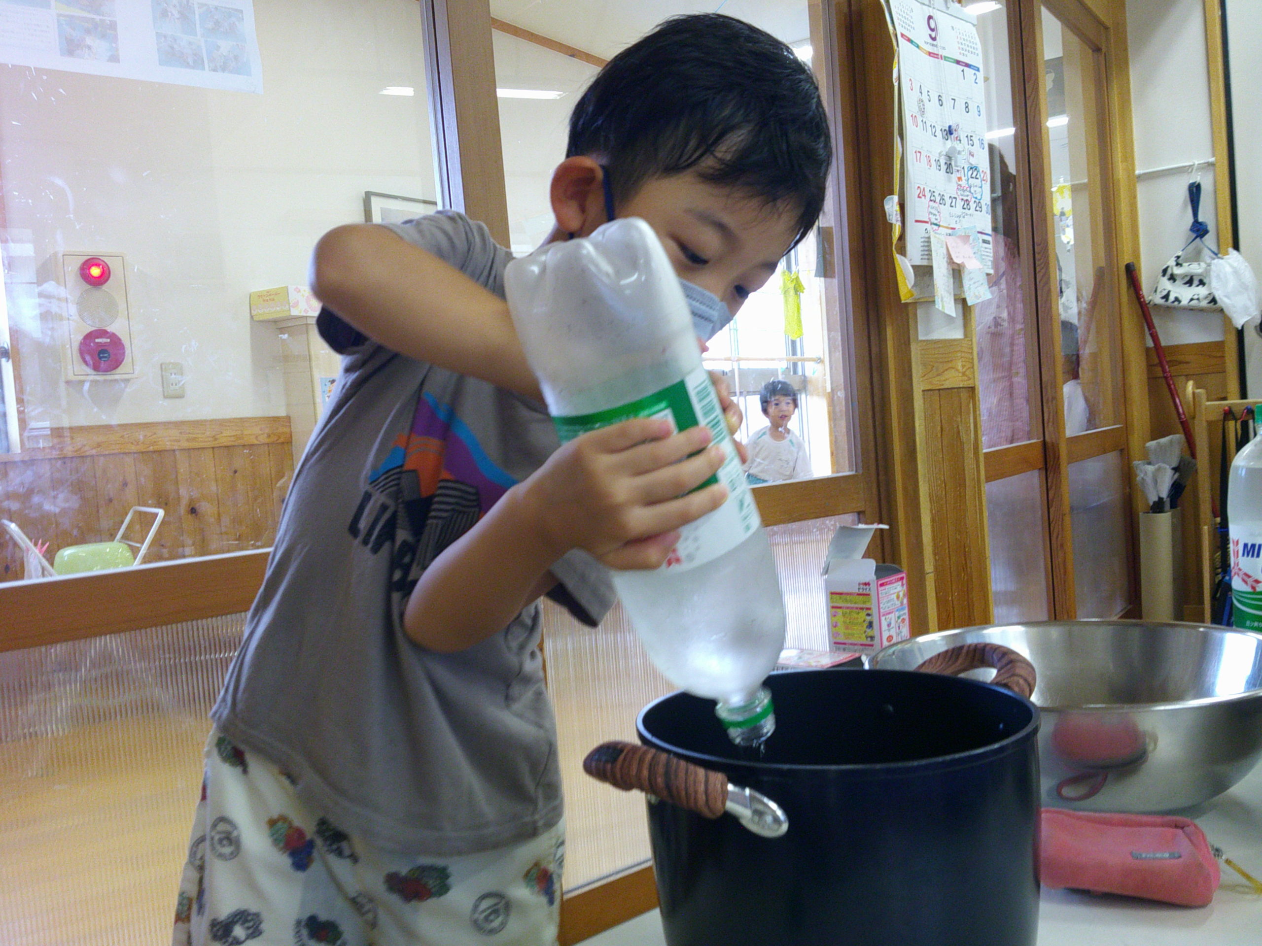 事前にレシピや作り方を調べていた子どもたち。早速、ゼリーの作り方について力説です☺