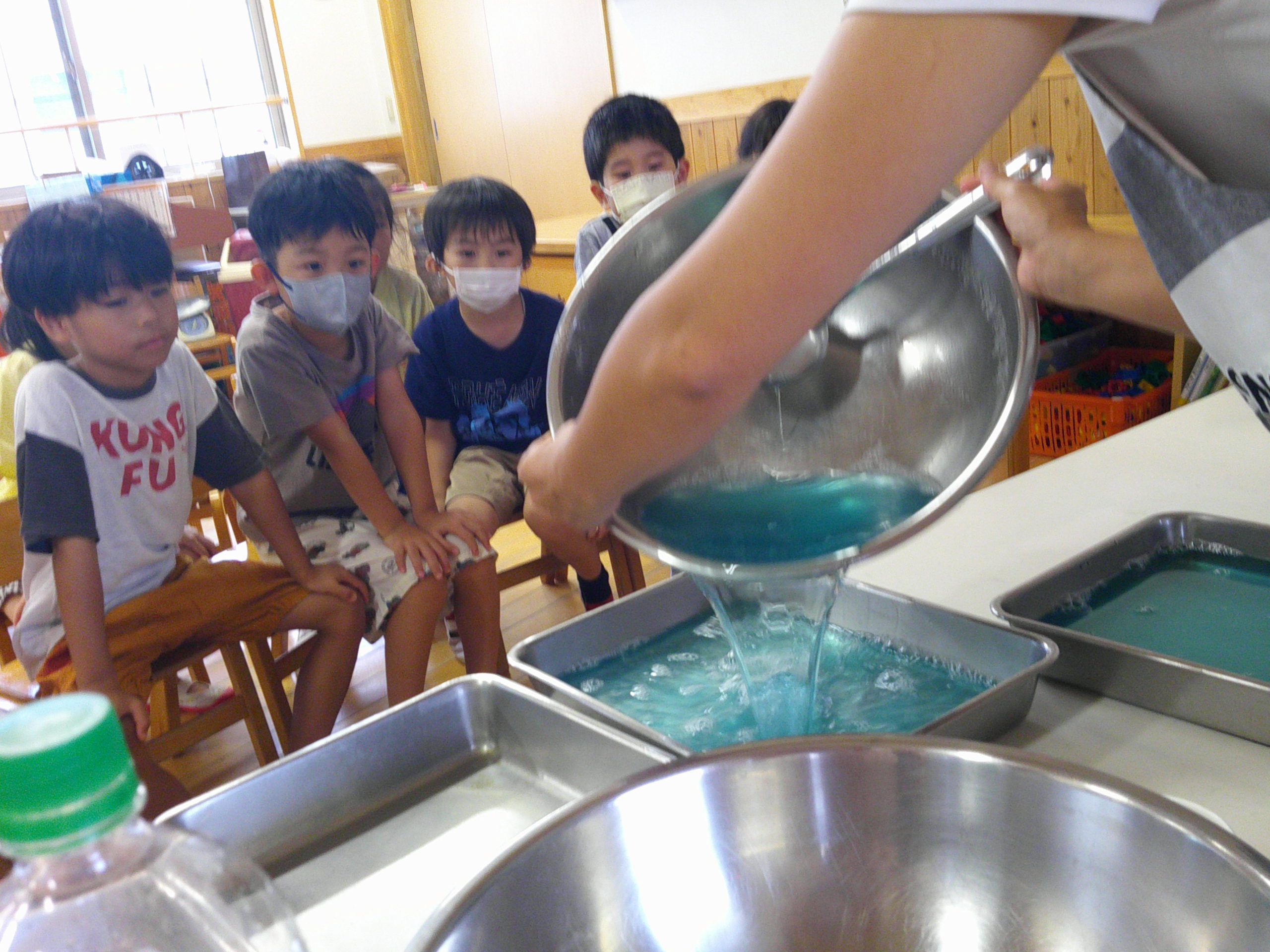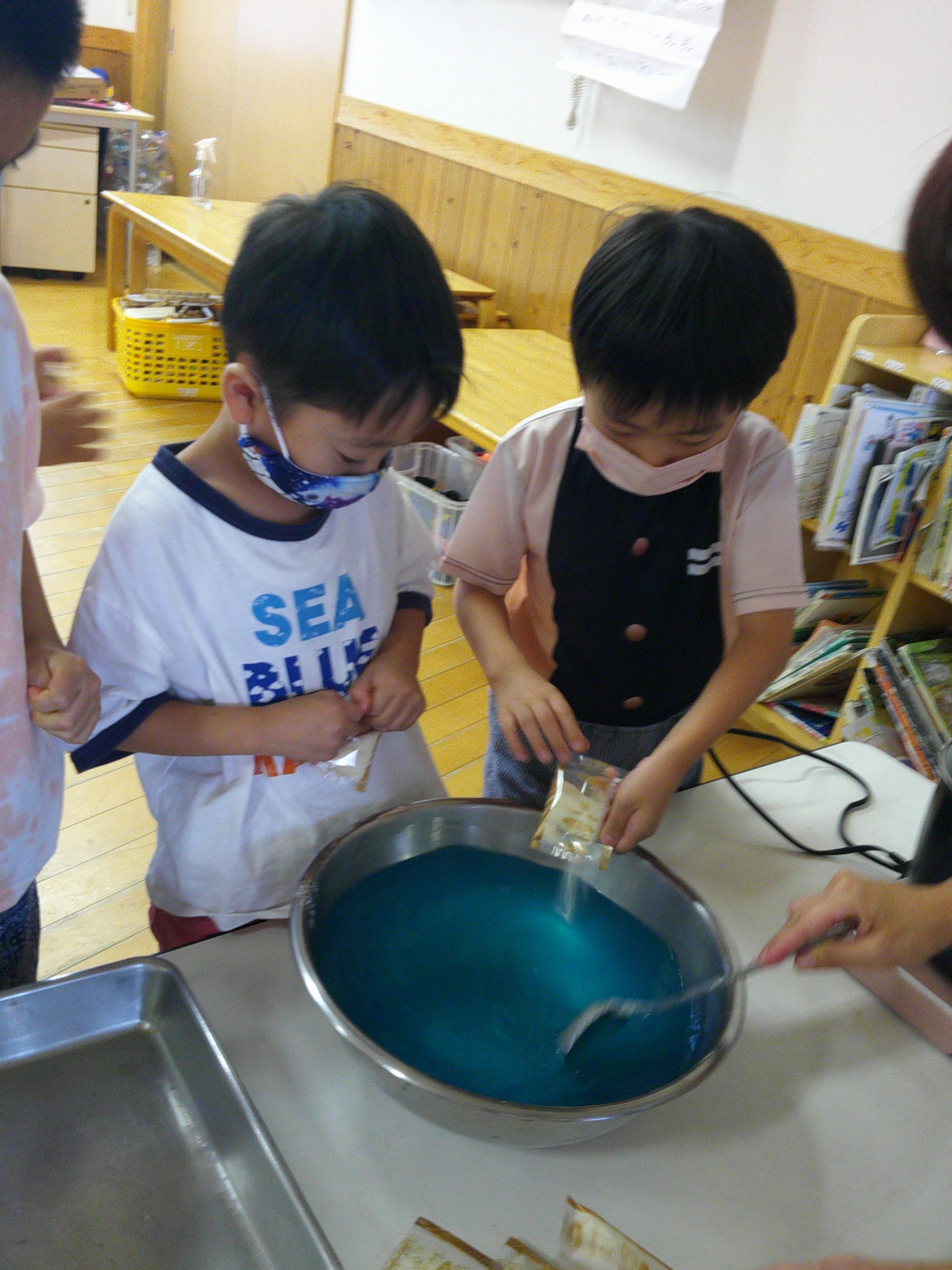 今日は、明日の夕食デザートとなる「青空ゼリー」を調理しました!