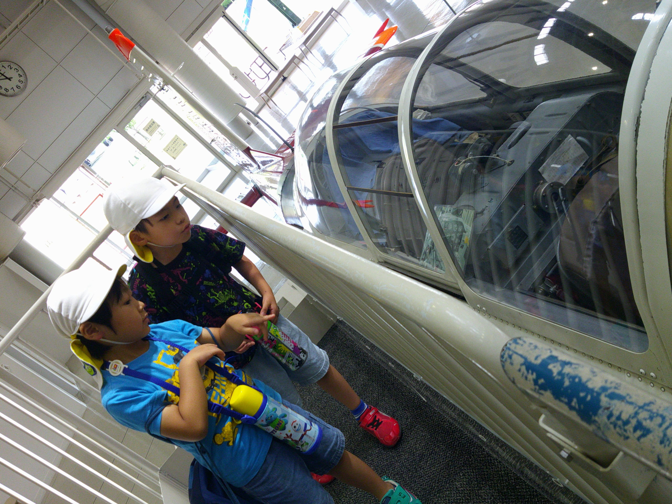 航空博物館では、大きな飛行機や宇宙船に潜入したりと、大興奮の子どもたち!