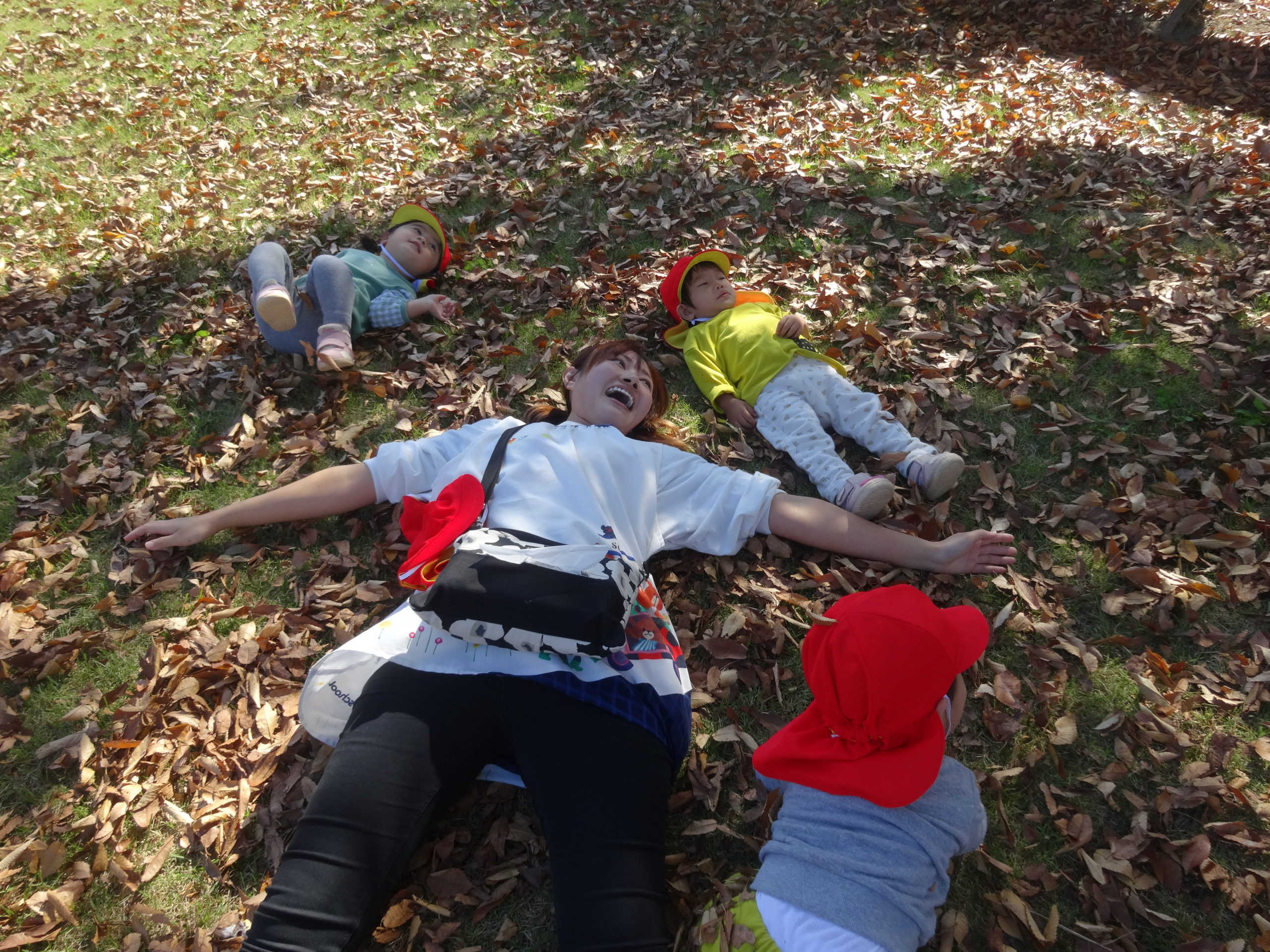そして広い公園ではどんぐり探しや落ち葉拾いなど秋ならではの自然に触れたり、友達や保育士と体を動かして沢山遊びました。