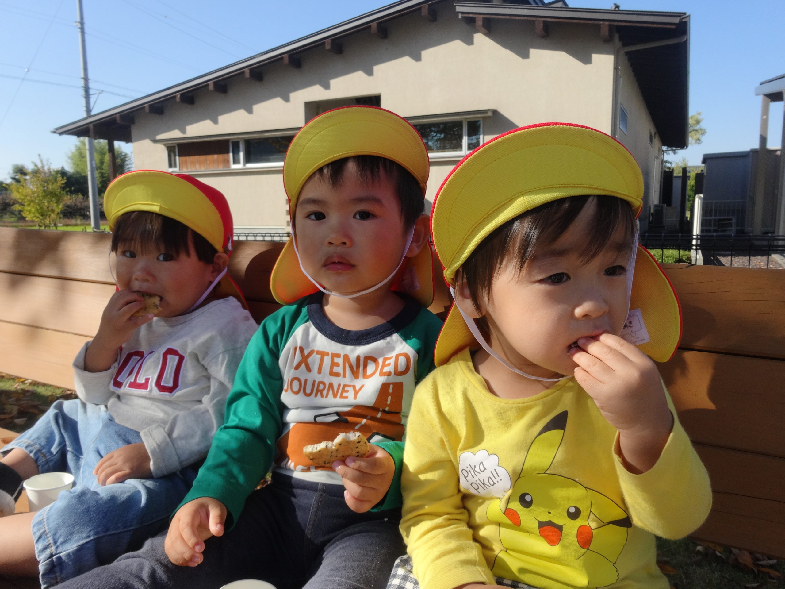 シートやベンチに座って食べました。公園で友達と食べるおやつはまた一段と美味しかったようです!