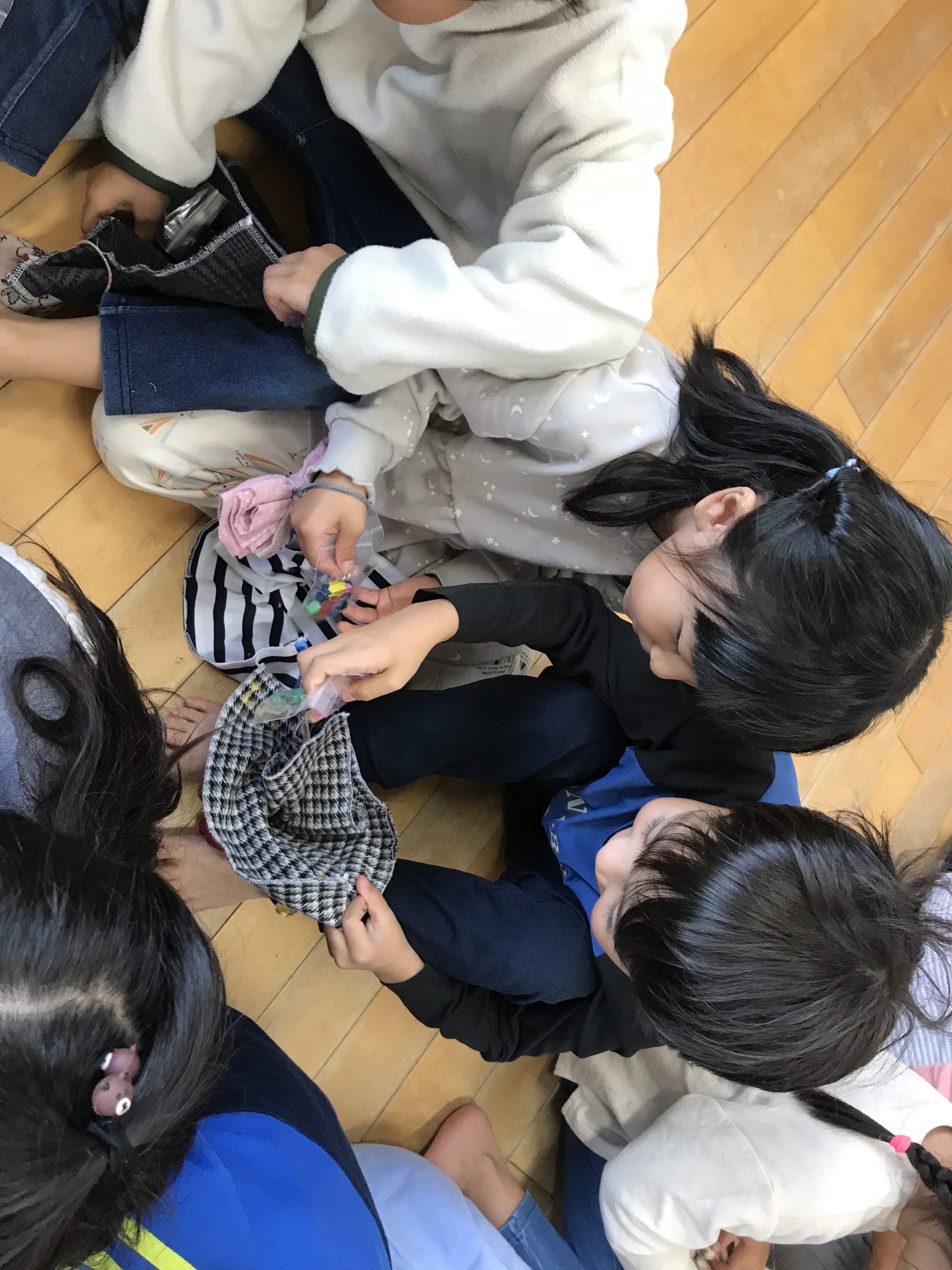 可愛いリボンを外すと、中からはお兄さんお姉さんが心を込めて作ってくれたカラフルなマーブルクレヨンが(*^^*)