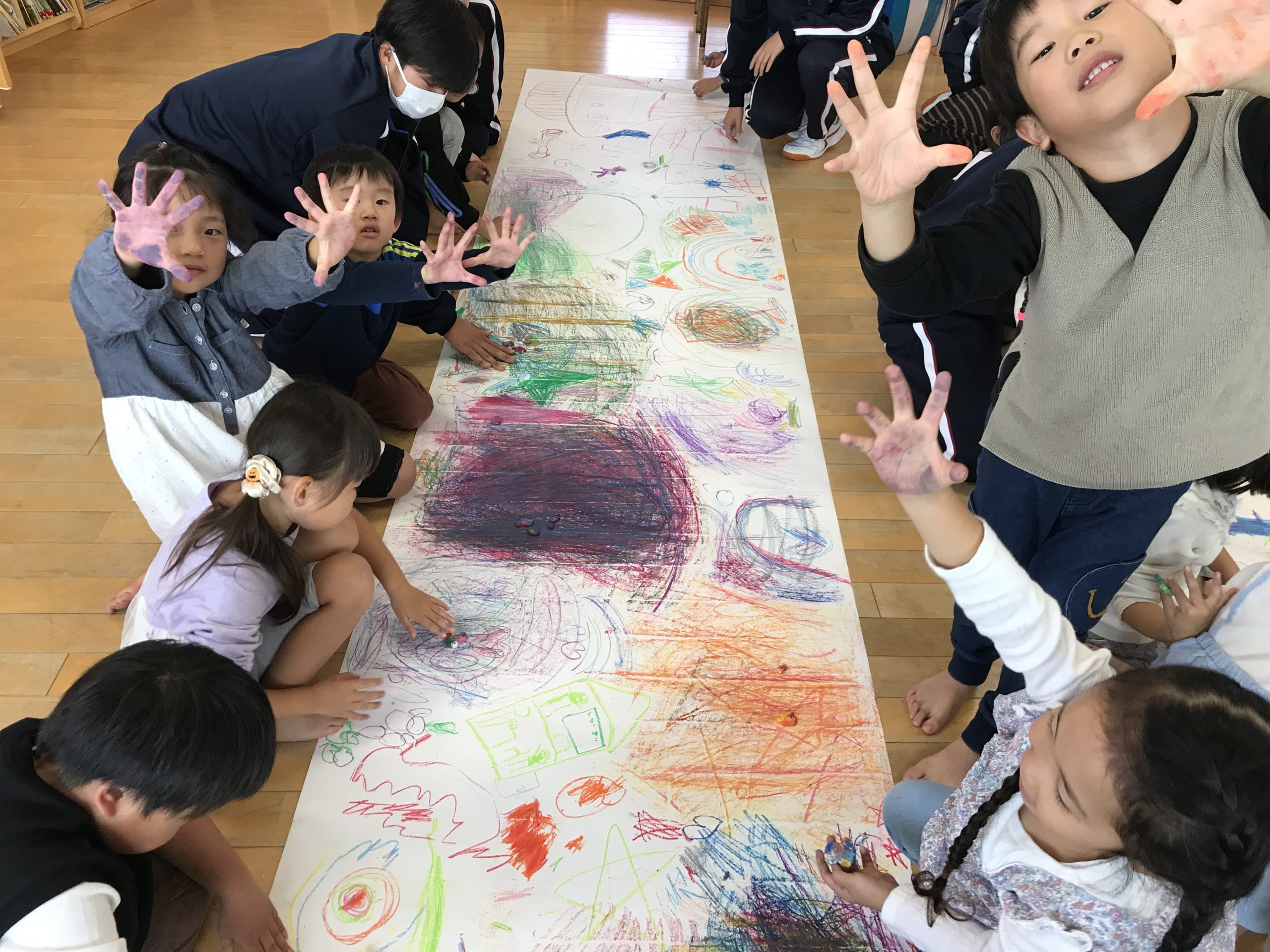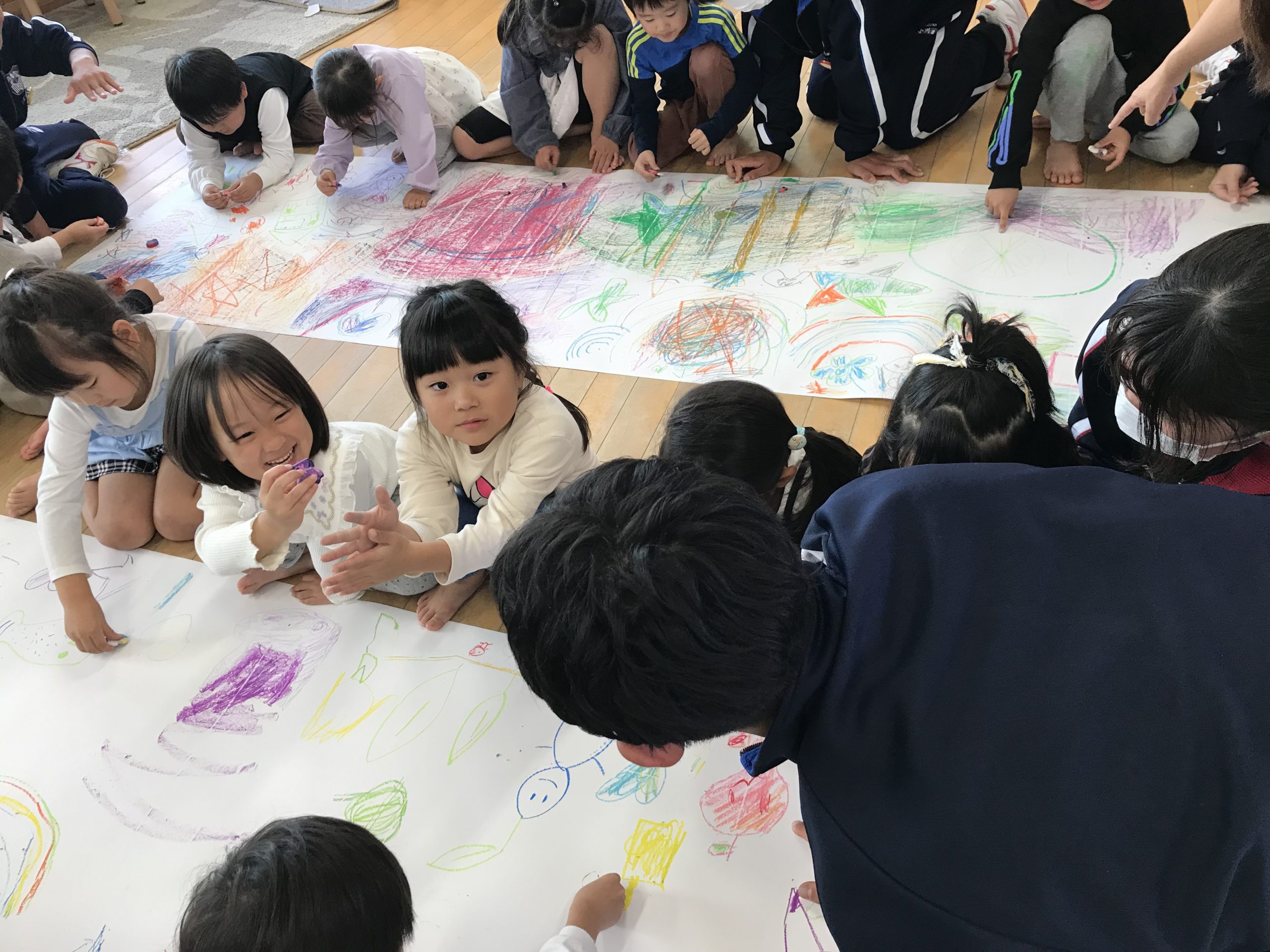 マーブルクレヨンでのお絵かきを通して、お兄さんお姉さんと子どもたちとの心と心がどんどん繋がっていきます💕