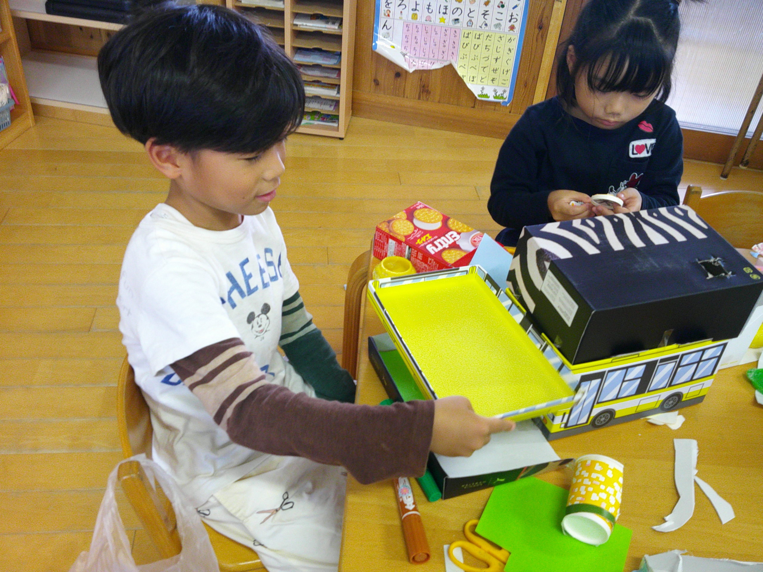 製作後には、友だちの作品を見ながら、明日はここを作ろうと目をキラキラさせる子ども達でした。