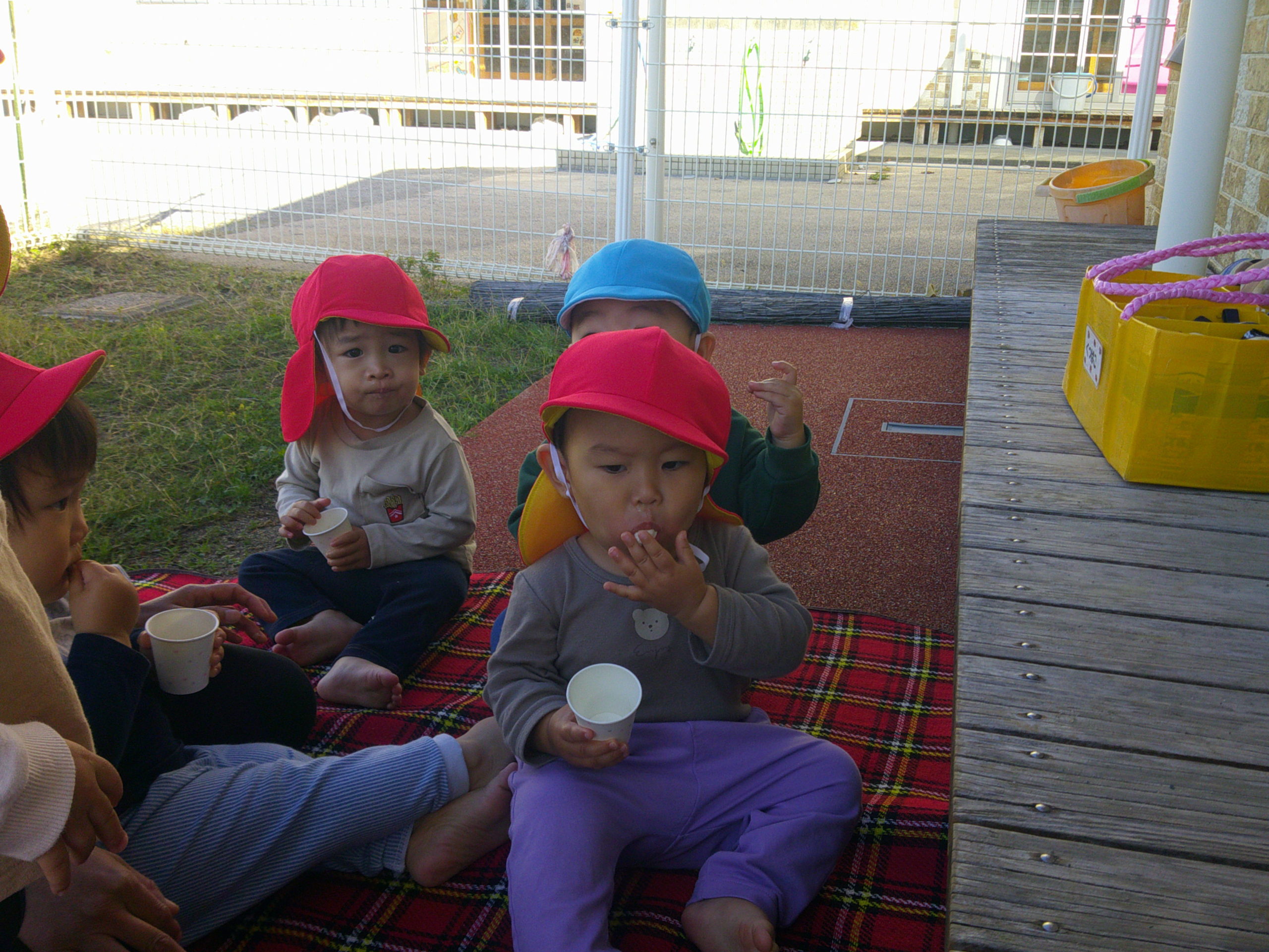 ぼくたちも外でおやつを食べました!!