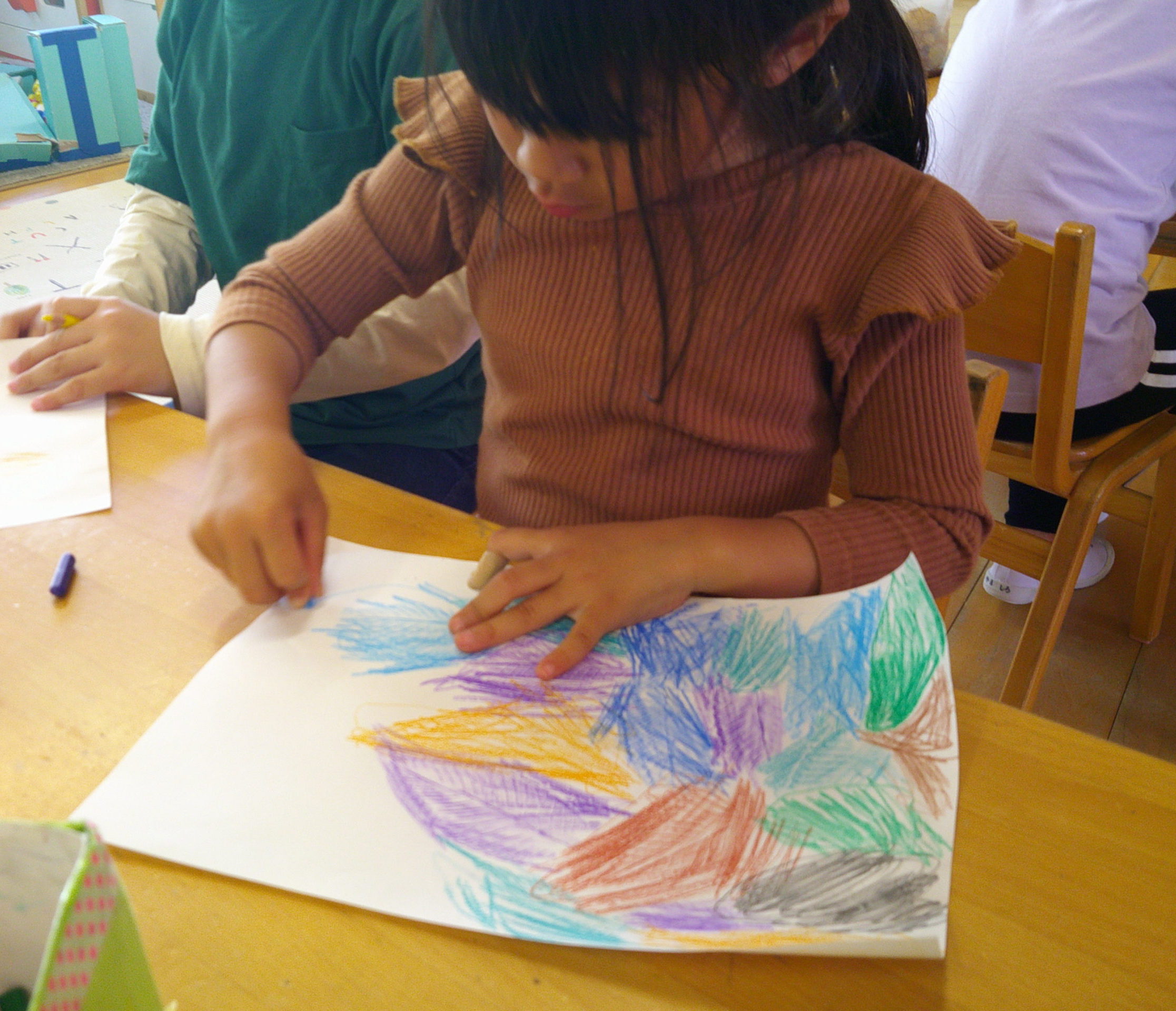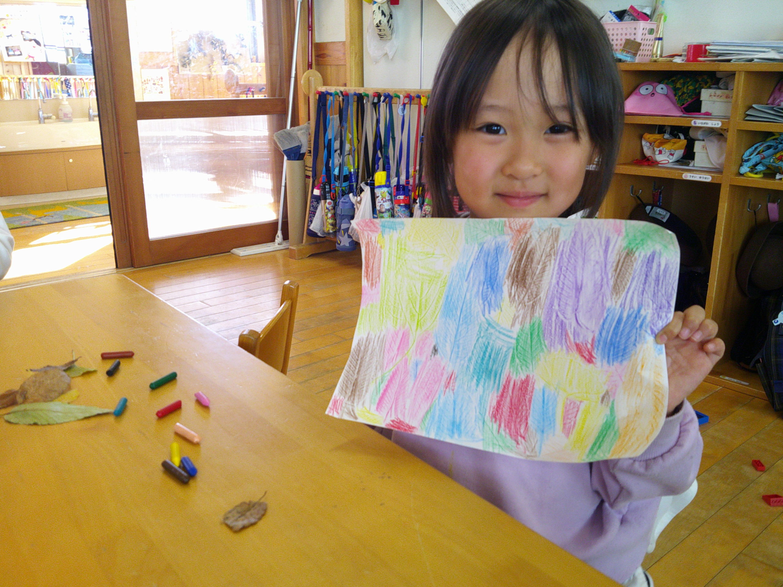 午後からは、公園で拾った落ち葉を使い、フロッタージュをしました!