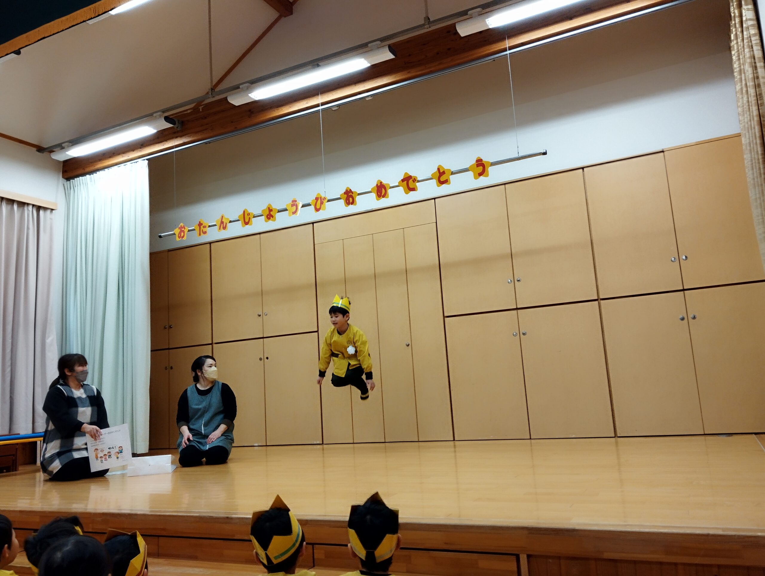 みんなで誕生日のおうたをうたった後は出しものの時間です!