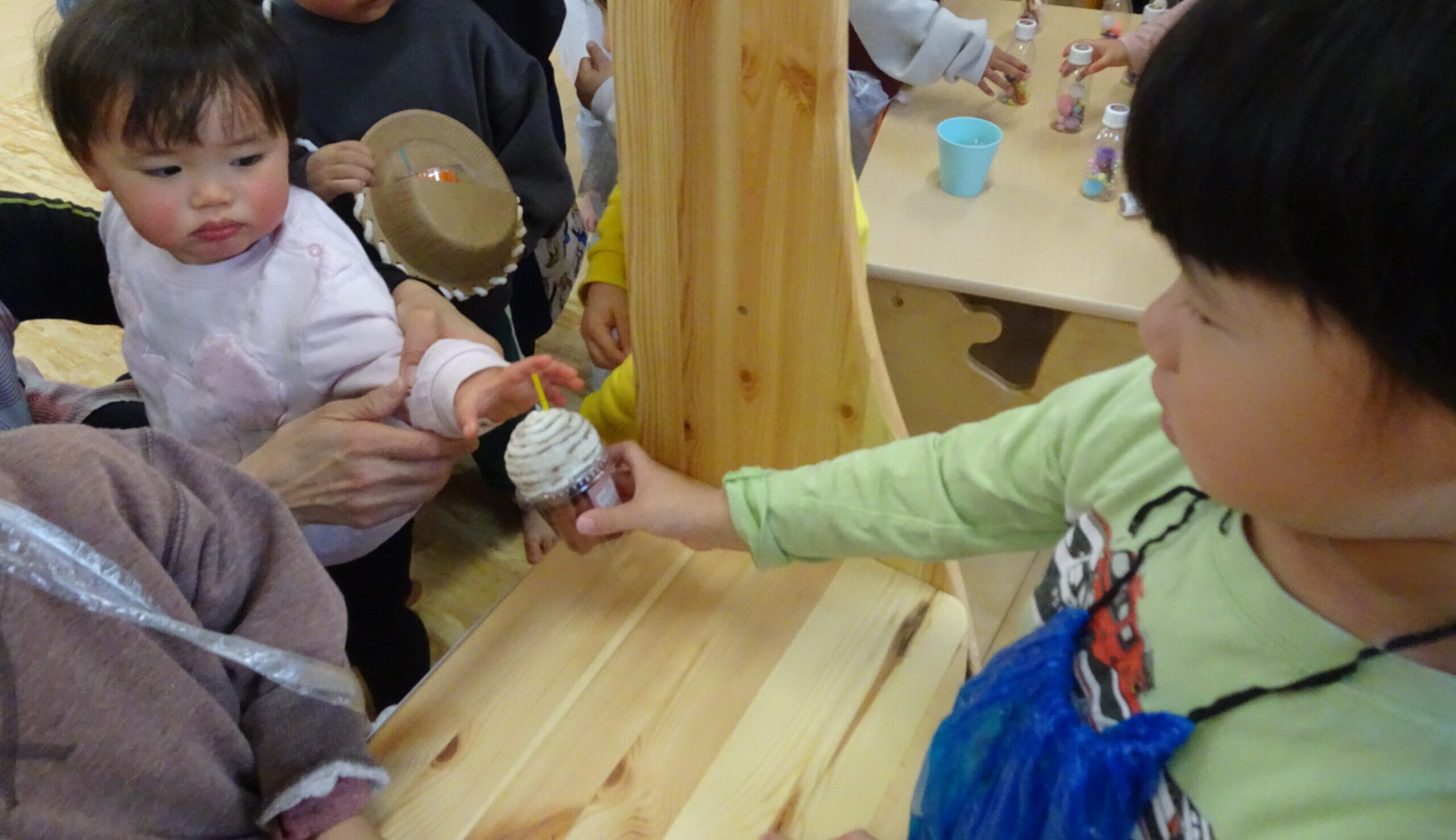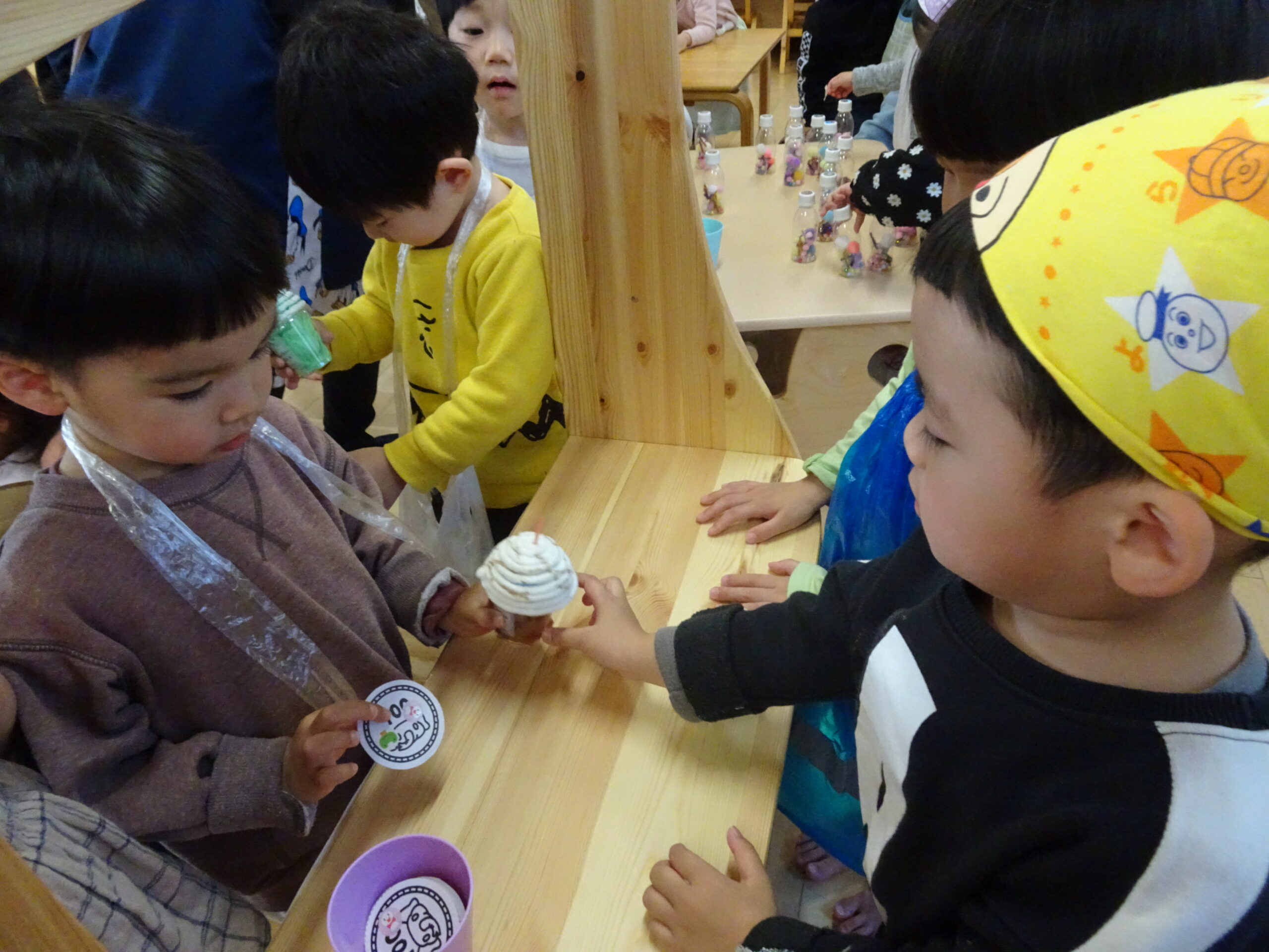 お金をもらったり、商品を渡したり、上手にやりとりができました✨