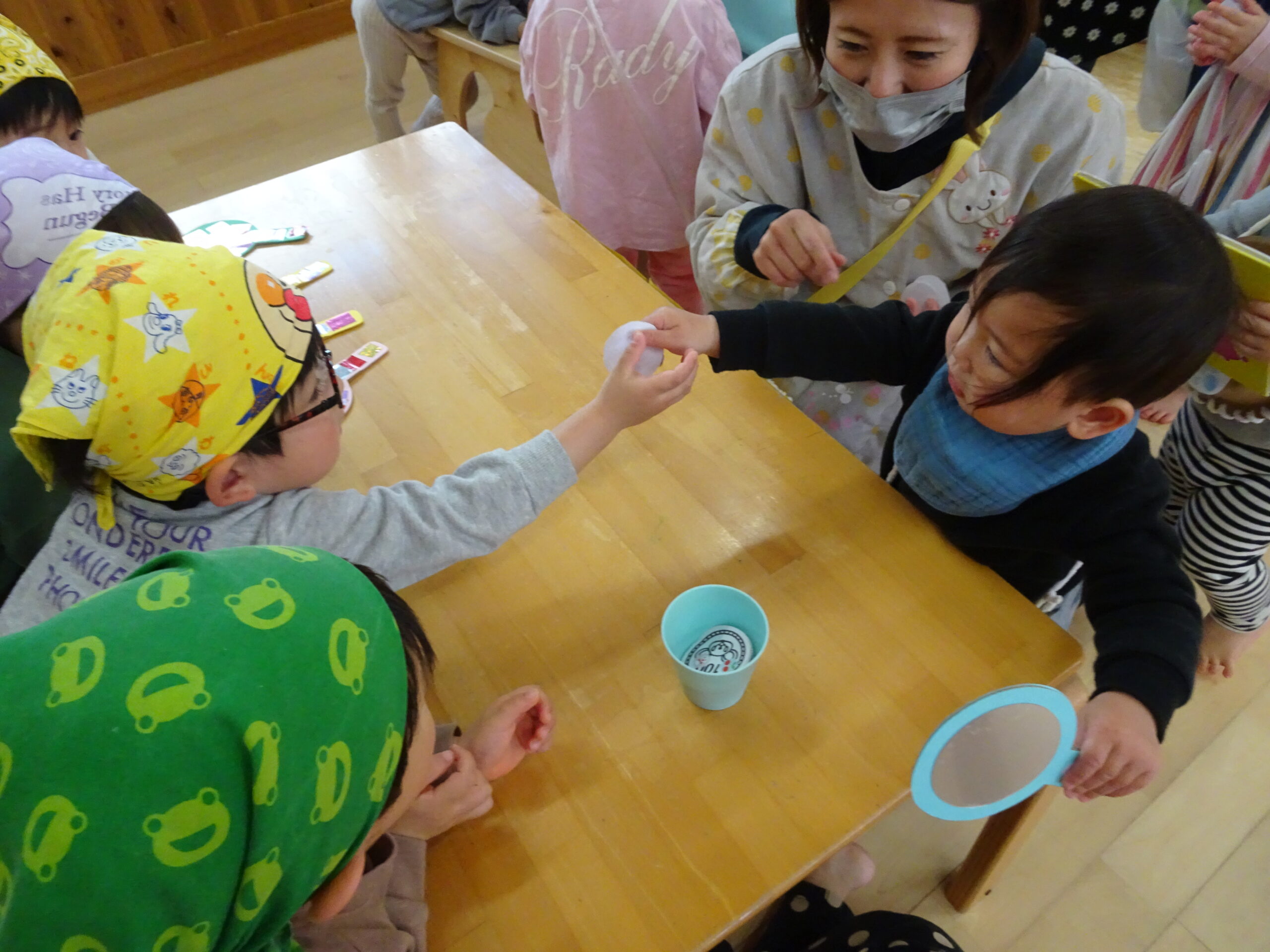 てんとうむしぐみのお友だちと、お店屋さんごっこをしました。