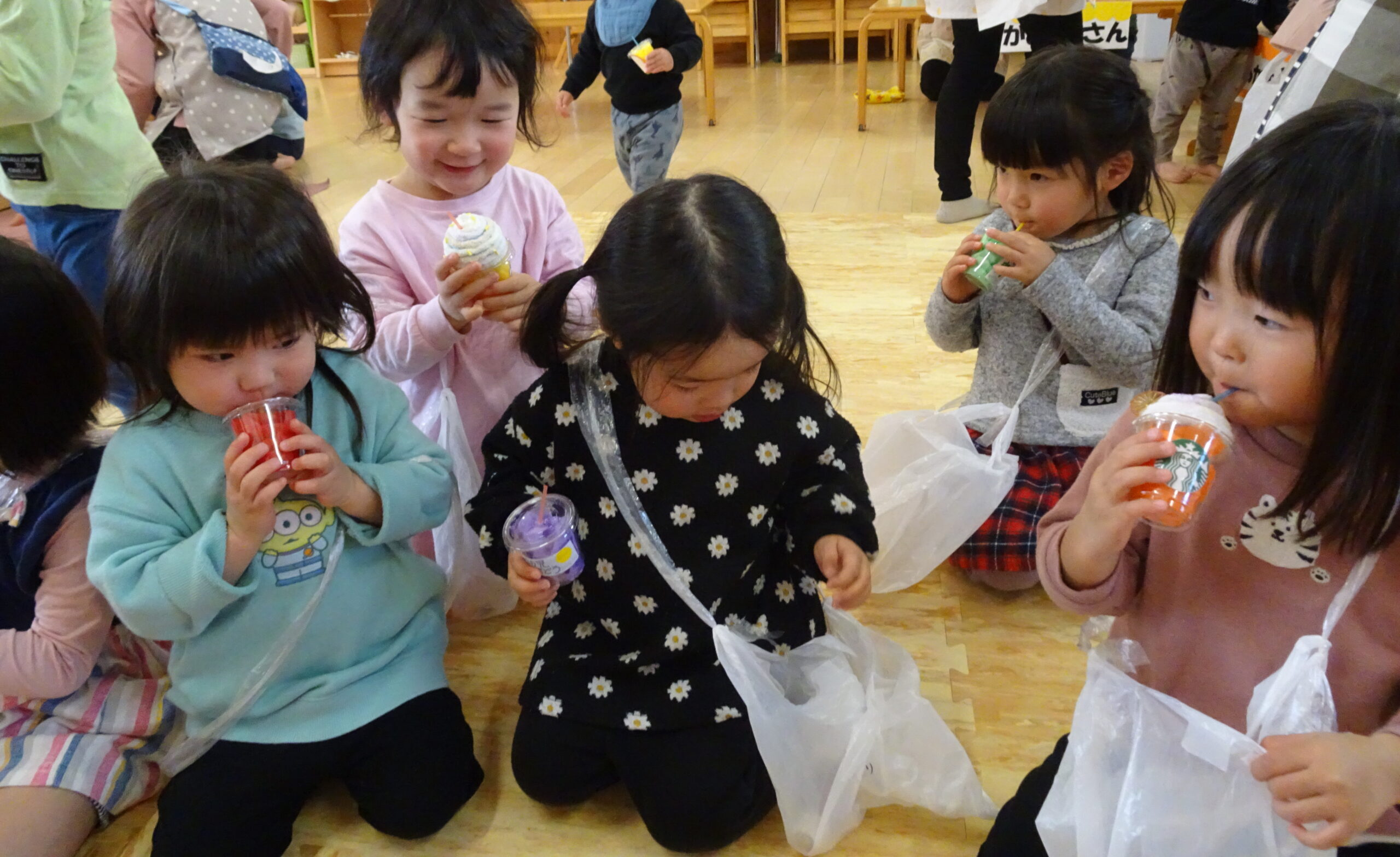 お店屋さんチームは、元気よく「いらっしゃいませ〜」と、すっかり店員さんになりきっていました。