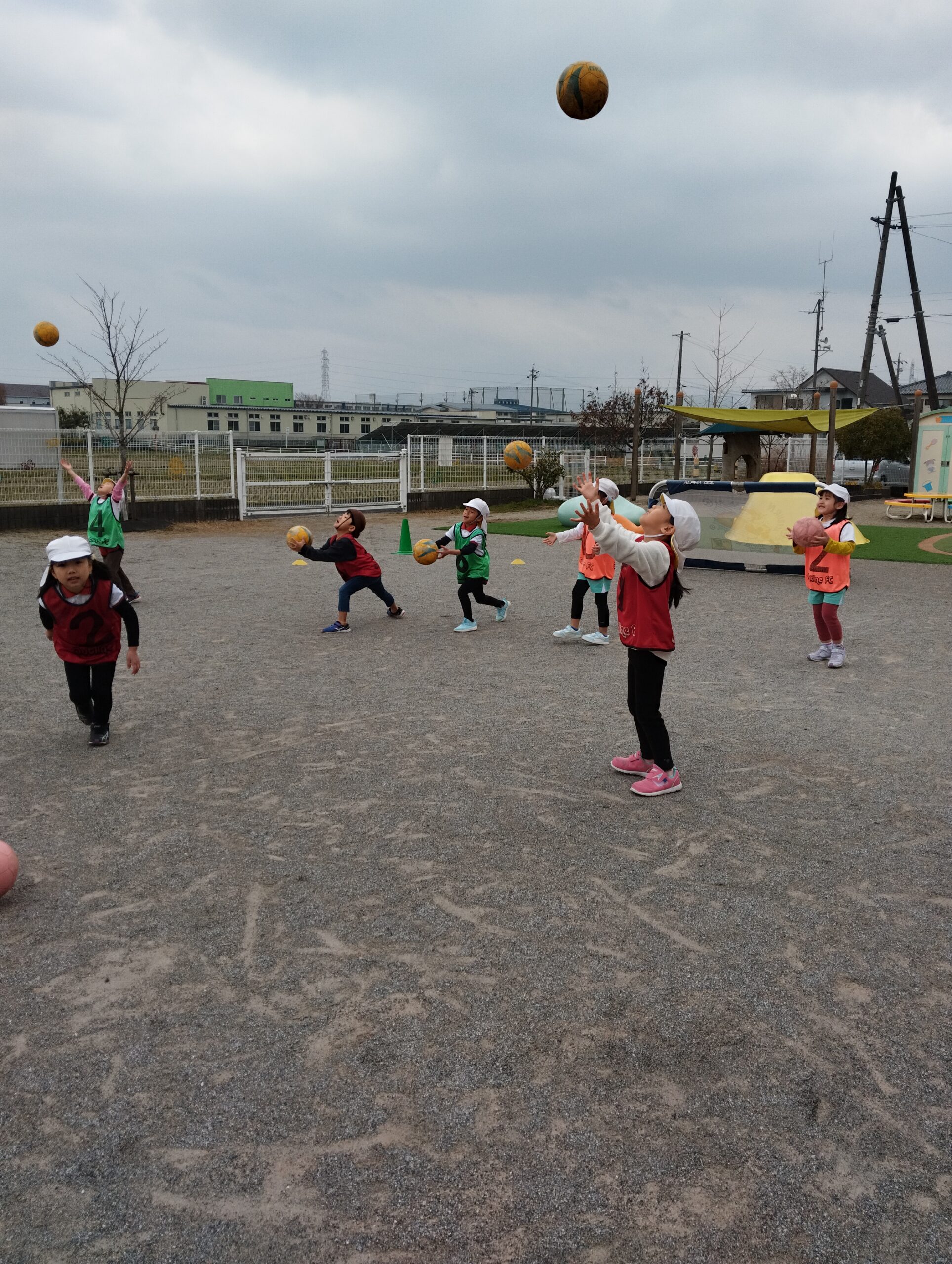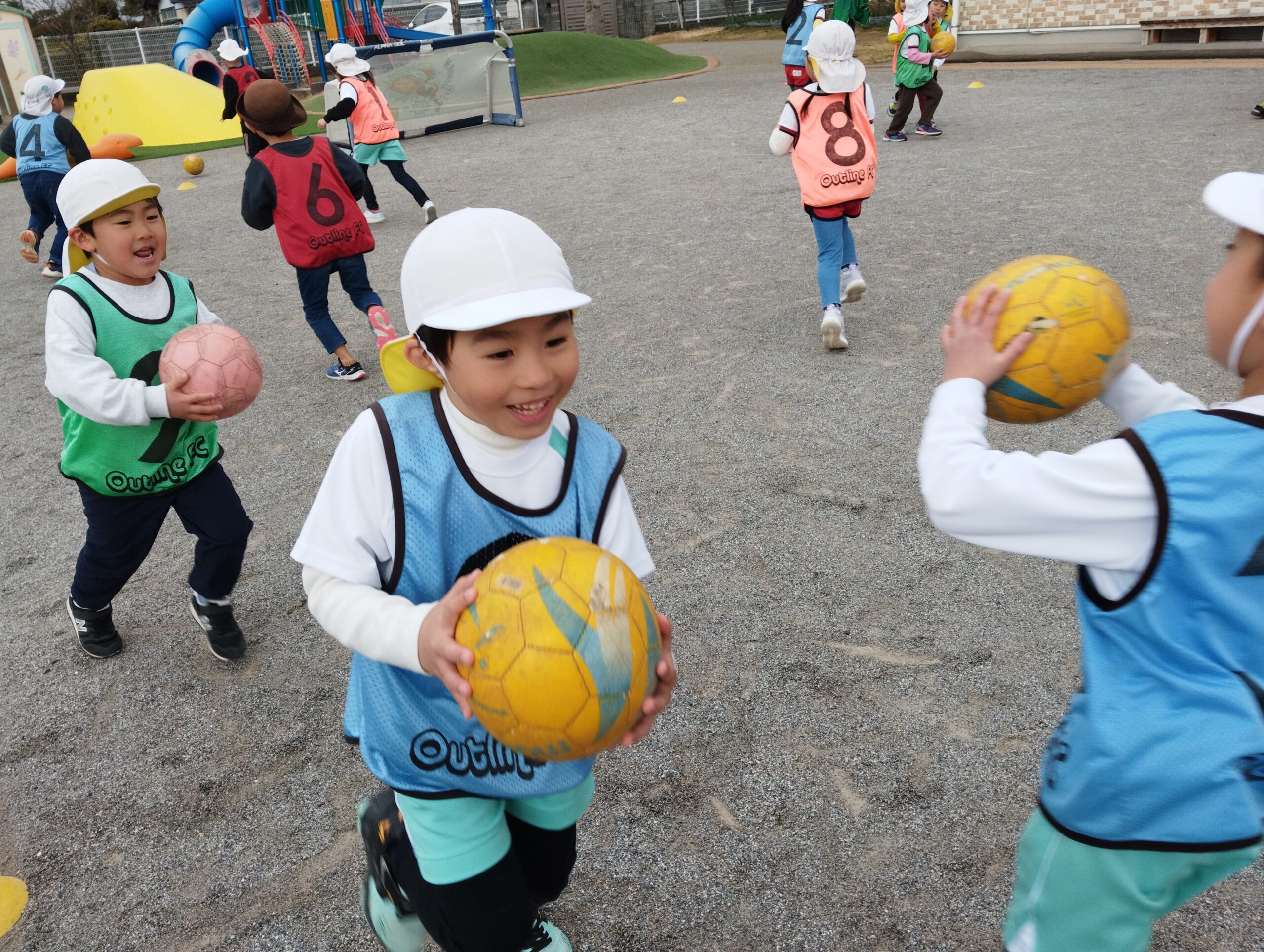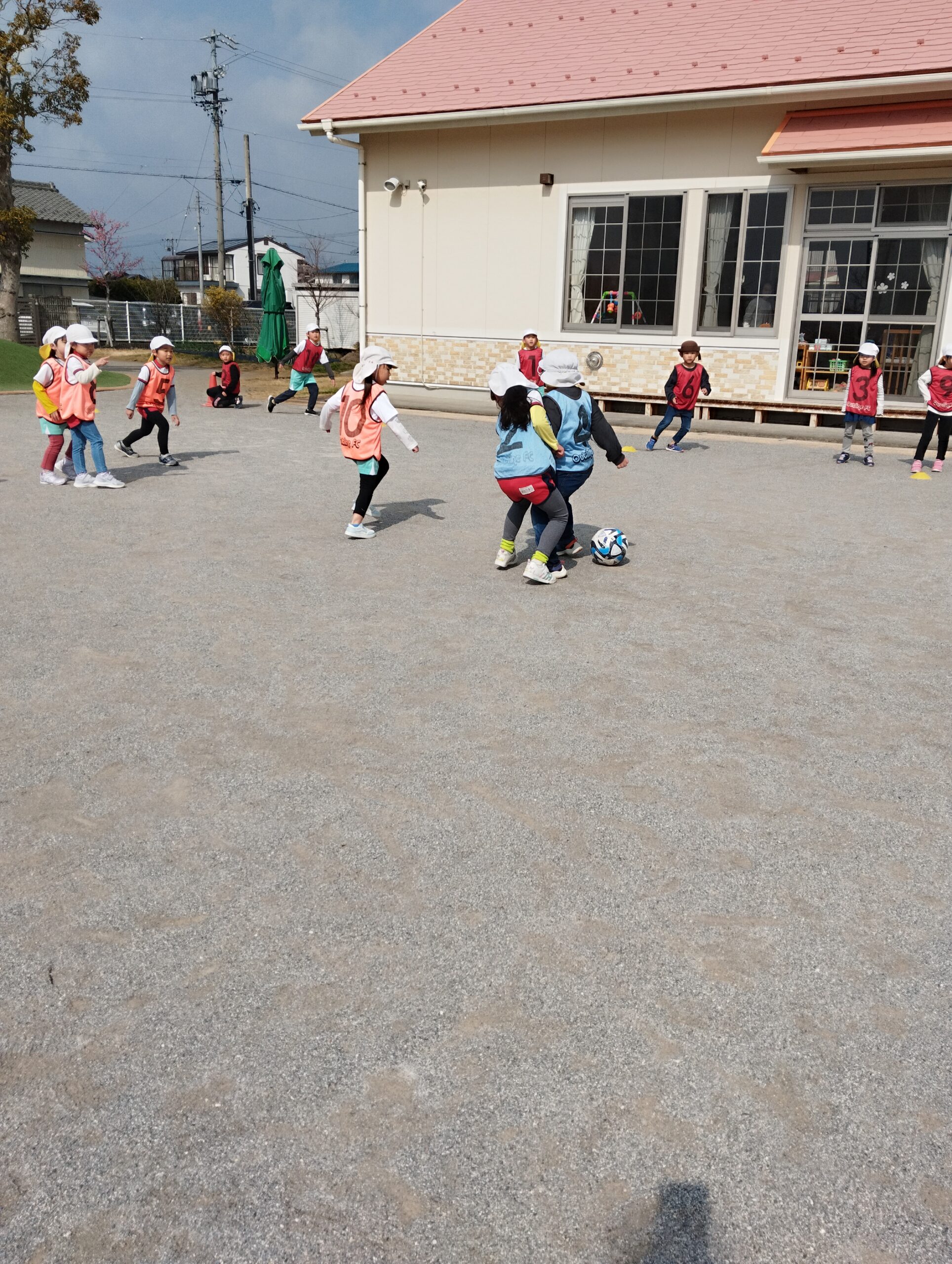いざ!試合!!!今日は、大人用のボールを使って試合をします!いつもより重たいボールでしたが、果敢に挑んでいく子どもたちでした😊
