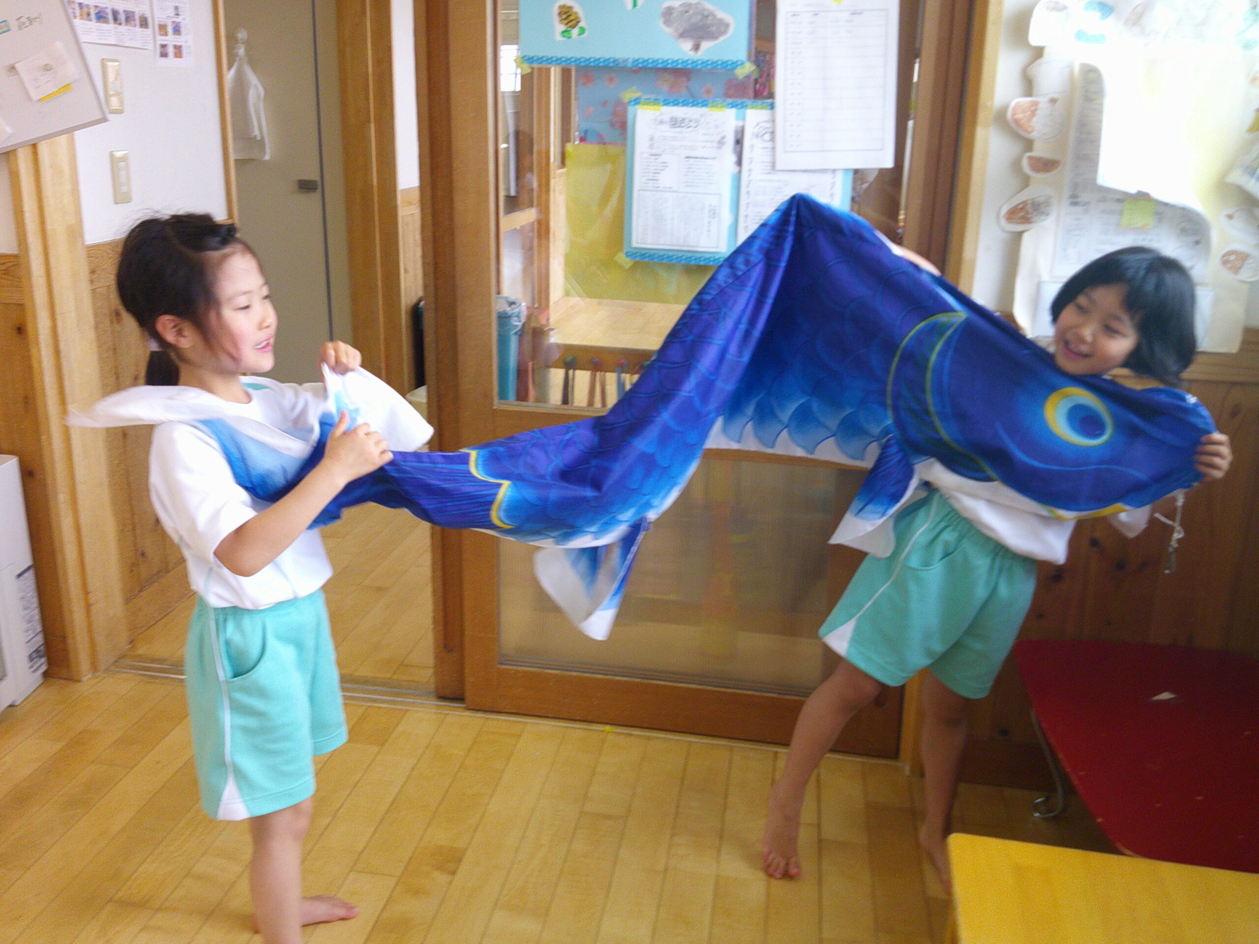 実際にこいのぼりに触れた時に『この模様はうろこだよ!』と教えたところ、『うろこ!うろこ!』と楽し気でした(笑)