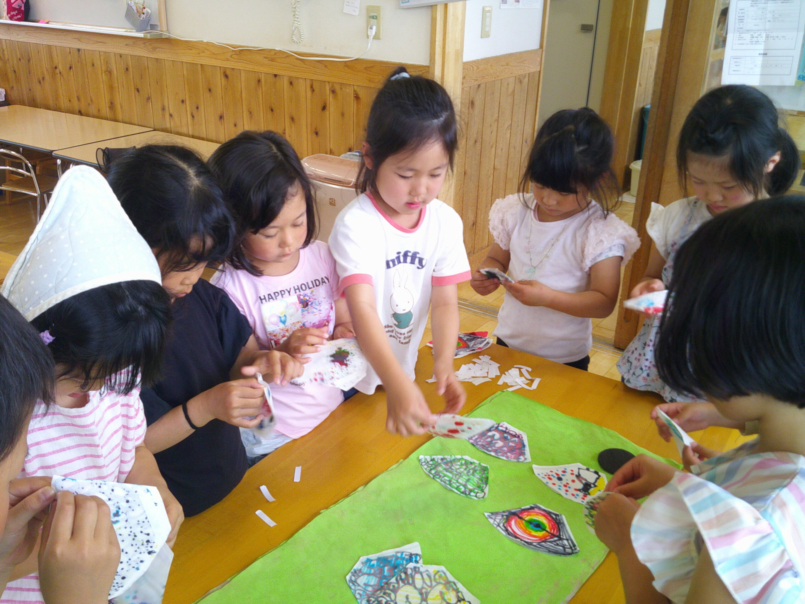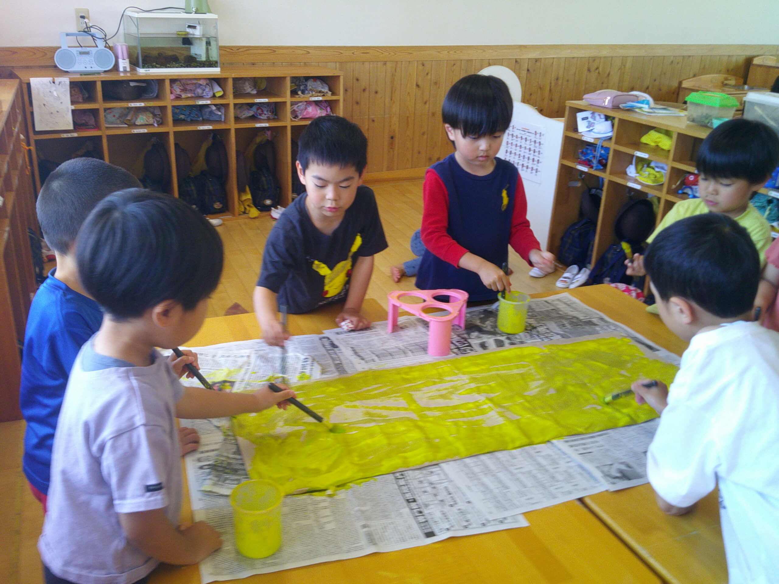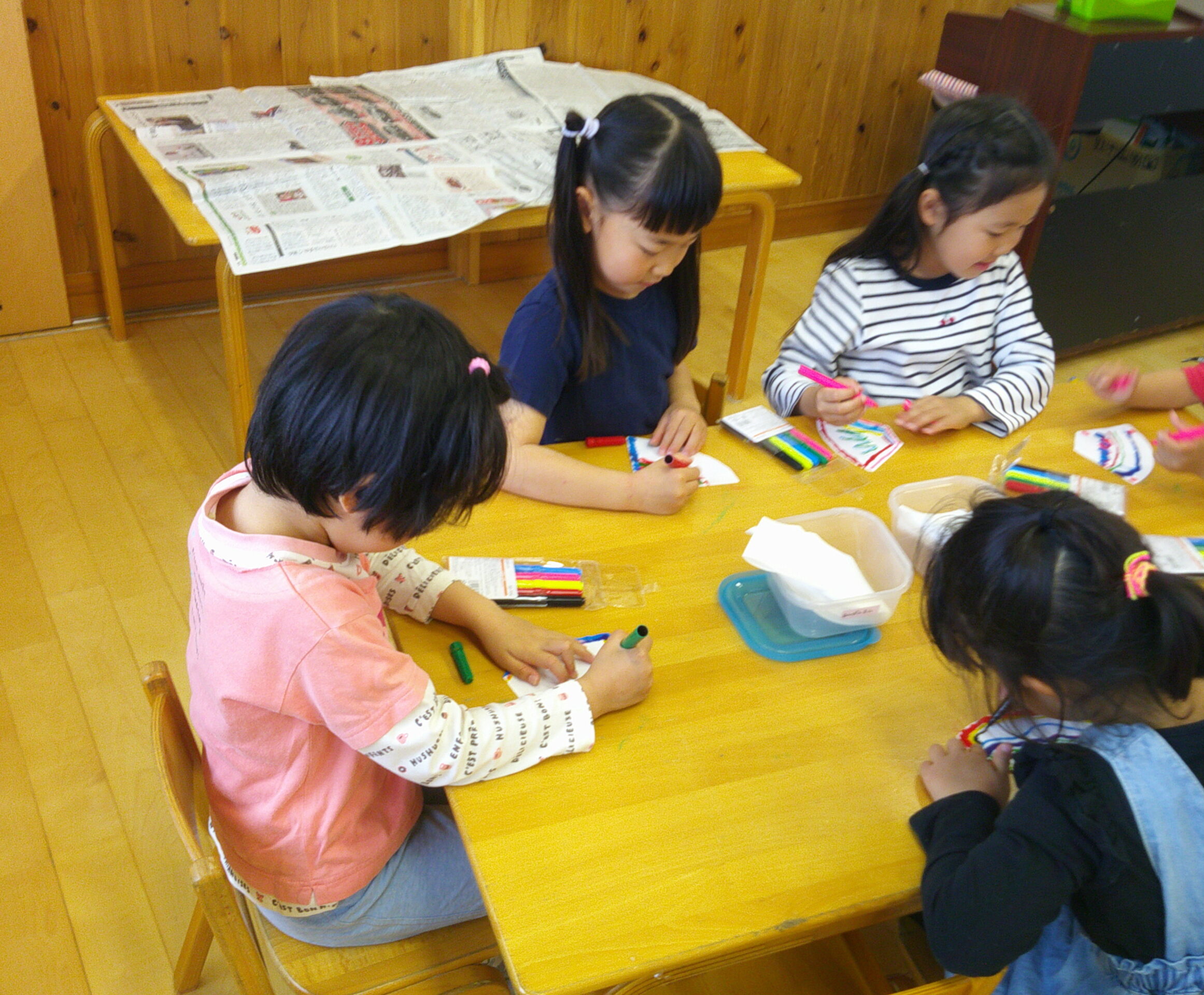 みんな、赤と青を混ぜてみると、紫になることに気づいたり等と、色の変化を楽しんでおりました♪